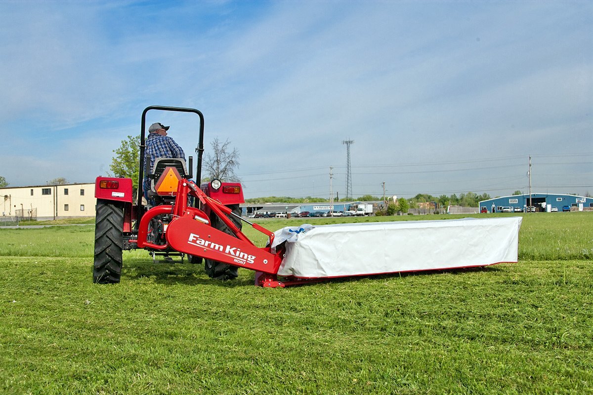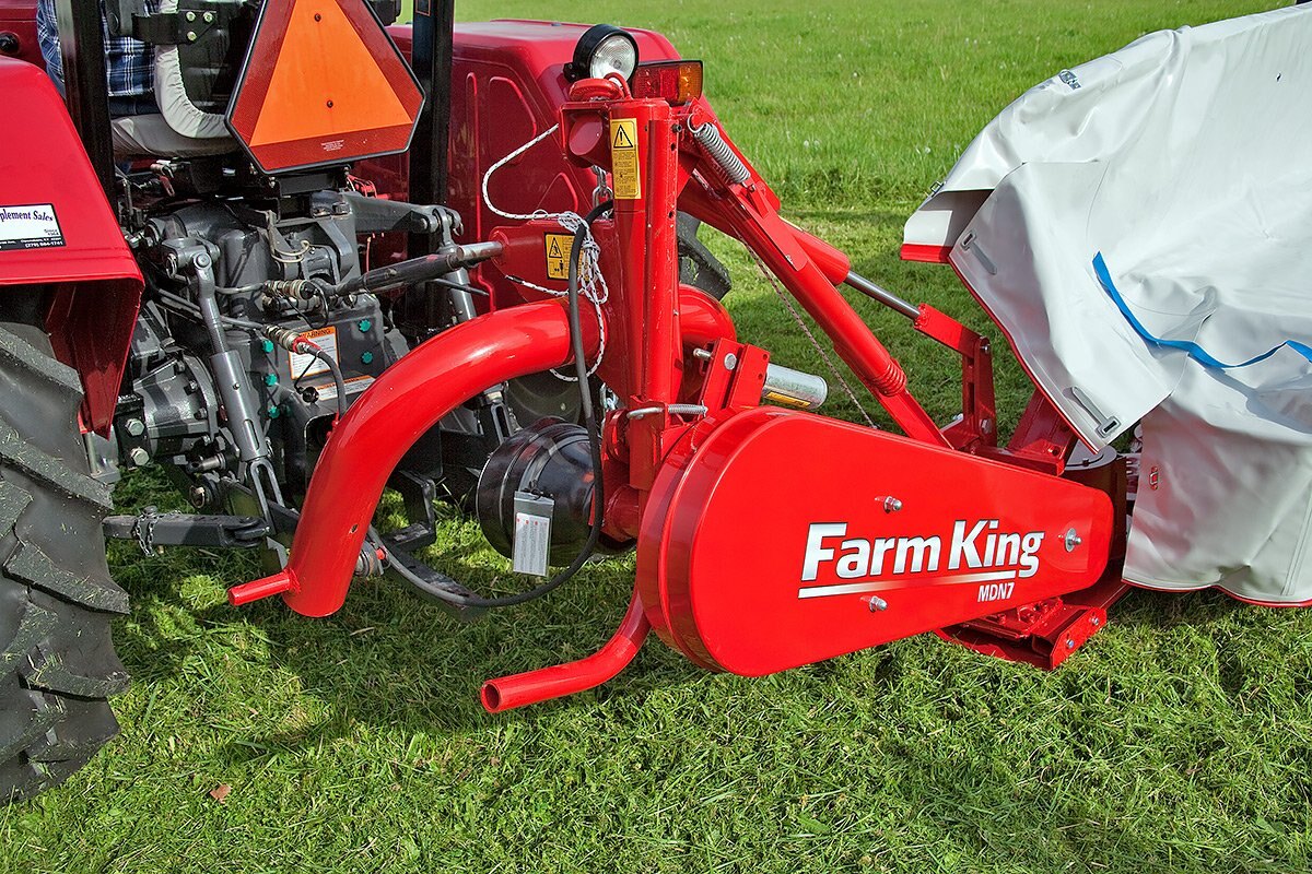 The Farm King MDN 4, 5, 6 and 7 are constructed using only the highest-grade steel and gear components. Cutting discs and blades are easily accessible by removing six bolts and the sturdy cover to reveal the inner workings of each disc assembly. Tractors ranging in horsepower from 40 to 50 can operate the three exclusive mower sizes with ease. Two cone discs are located on each end of the disc assembly to assist in swath formation and shaping. |