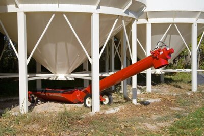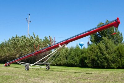 Farm King unloading augers transfer grains and oilseeds much faster than conventional utility augers and reach where normal portable augers can’t....