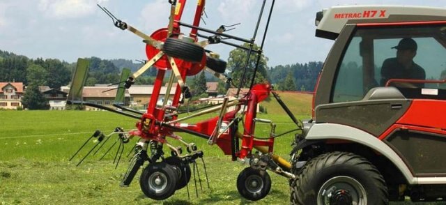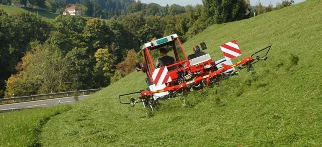 FELLA has specially developed three very light yet robust hay tedders for alpine terrain. Maximum safety is still ensured even on extreme slopes thanks to the low centre of gravity and the compact transport position.As with all FELLA hay tedders, the forage is picked up by the tines and turned gently without suffering damage. A light, loose and well-mixed layer of forage is created, all of top quality. The edge spreading device which is fitted as standard (TH 401 DN, TH 431 DN and TH 601 DN) helps you to avoid any loss of forage even under the most difficult of harvesting conditions or when working in hillside lines. Using the spreading angle adjustment system, it is possible to adjust the rotor pitch to three different positions. This provides you with the advantage of being able to optimally adjust yourself to the most varied of harvesting conditions.