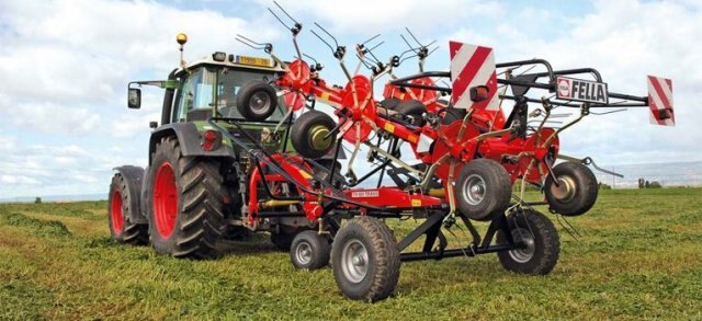 As with all FELLA hay tedders, the forage is picked up by the tines and turned gently without sufferring damage. A light, loose and well mixed mat of forage is created, representing top-quality forage material. With the central edge spreading device which is fitted as standard, edges of fields no longer present any problems – it's all high-quality forage down to the last blade of grass. Because of the spreading angle adjustment system, you can also always optimally adapt your machine to the harvesting situation, whatever it is. In the working position, the transport chassis is folded up in front of the rotors, which ensures an optimum centre of gravity. As a result, the chassis does not stand in the ejection path of the forage and the loading created by the centre rotors is reduced to a minimum. Perfect prerequisites for producing your high-quality forage.