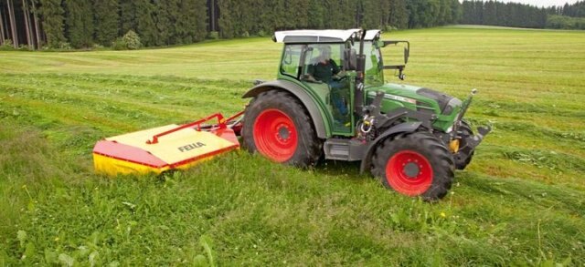 The side hitch attachment of the mower unit in combination with the strong pulling spring ensures low ground pressure and optimum ground adaptation. This reduces the impact on the sward and the mower. The robust machines are equipped with two cutting drums and achieve an optimum cutting pattern and produce clean forage.