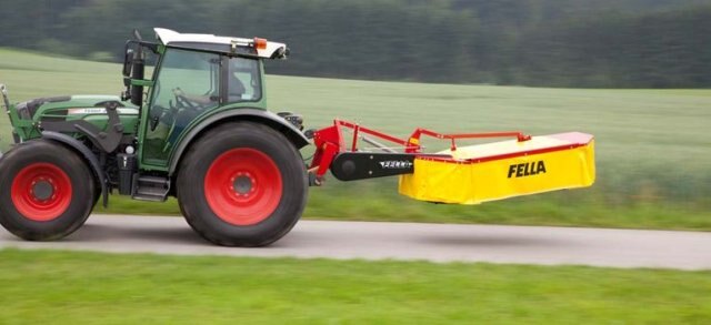 The mower is lifted out on headforeland via the three-point hydraulics of the tractor. During work on grassland, the impact guard system (which is fitted as standard) protects the mower unit if obstructions are encountered when driving. When work is finished, the mower unit can be simply swivelled backwards and, if required, upwards in readiness for safe driving on the road.