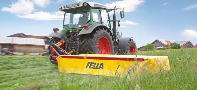 Because of their lightweight construction, FELLA disc mowers with inner skid are especially suitable for use with smaller tractors. The adjustable lower link pins allow a combination with an extremely wide variety of different tractors and tyre widths.
