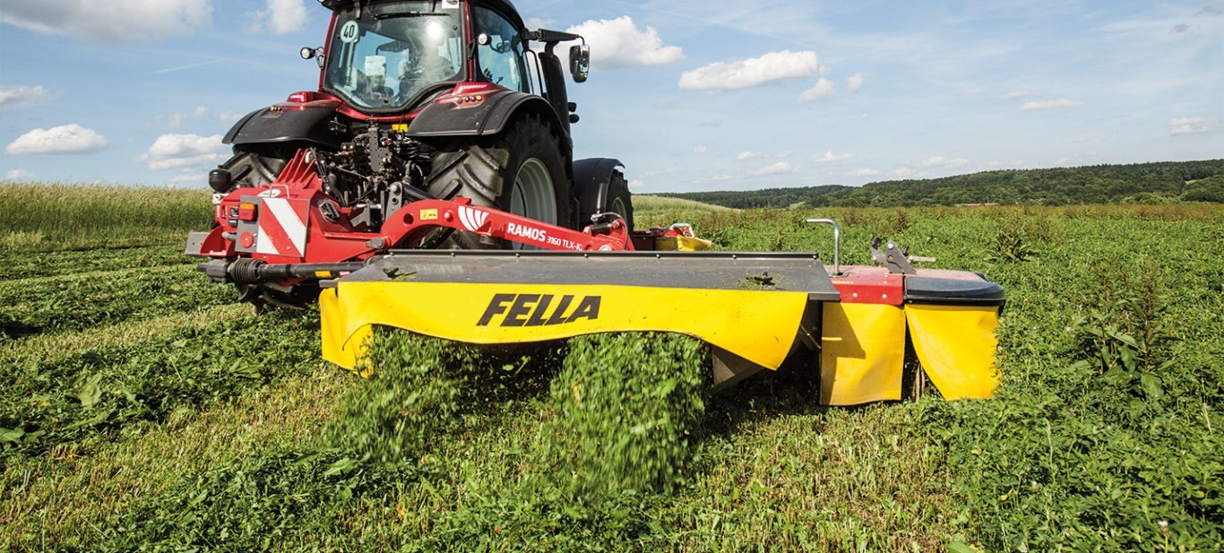 Hydraulic cylinders fold the RAMOS TLX mowers vertically towards the machine's centre of gravity, with a shock absorber minimising the impact when they reach their end position. |