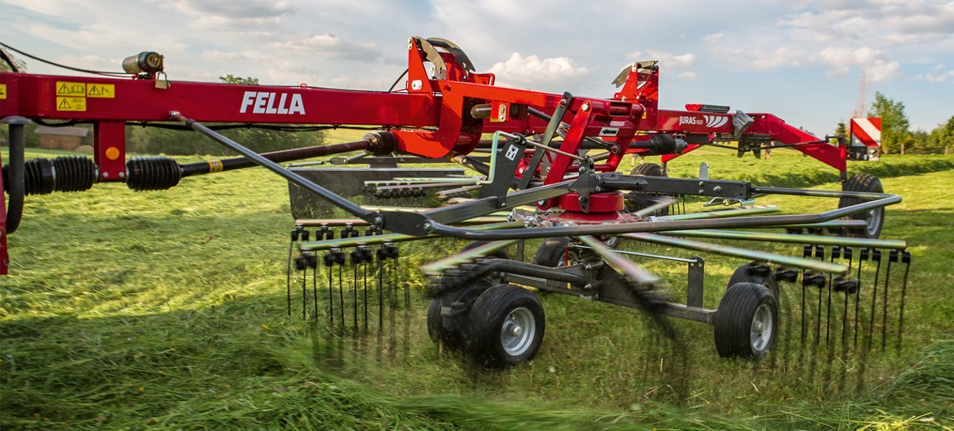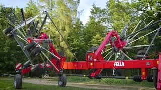 LARGE ROTOR OVERLAP FOR NEAT FORAGE HANDOVER All FELLA side rakes have a large overlap between the first and the second rotor. This ensures neat forage handover and swath formation even under difficult working conditions, such as turning around corners or very large amounts of forag