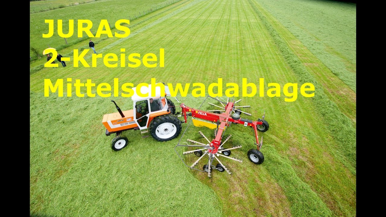 The JURAS 671 entry-level model in the two-rotor central rake range has a working width of 5.80 m to 6.60 m. This machine combines the technology which has proven itself so many times before in the single-rotor rake with elements of the professional equipment fitted to its "big brothers".