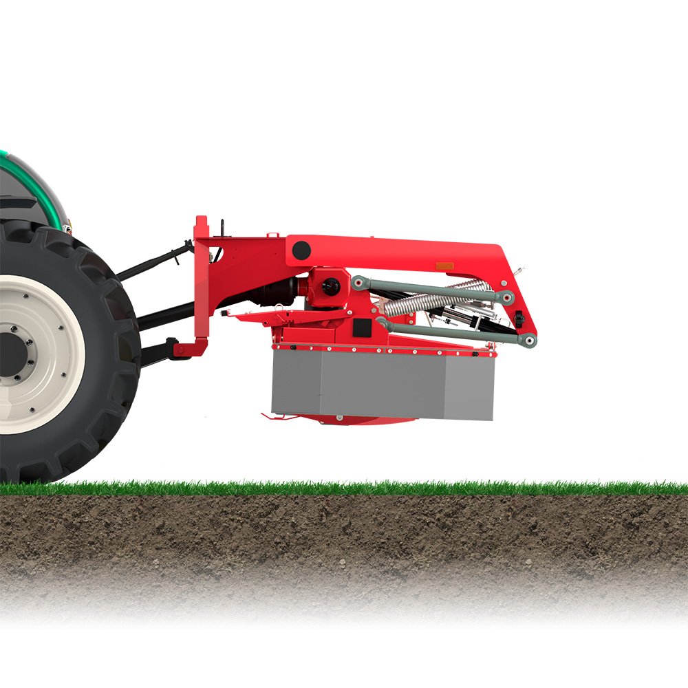 The towing point positioned well towards the front of the headstock with sensing swing arms allows the cutter bar to glide easily over any surface. This not only protects the sward but also saves fuel.