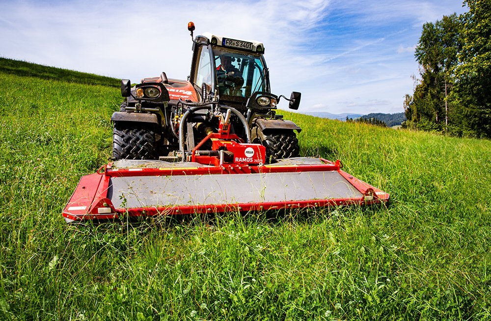 The short, compact attachment ensures that the centre of gravity is close to the tractor and guarantees optimum efficiency on slopes in alpine terrain. |