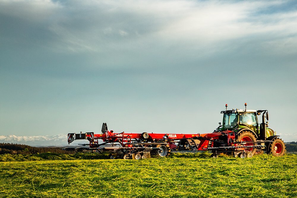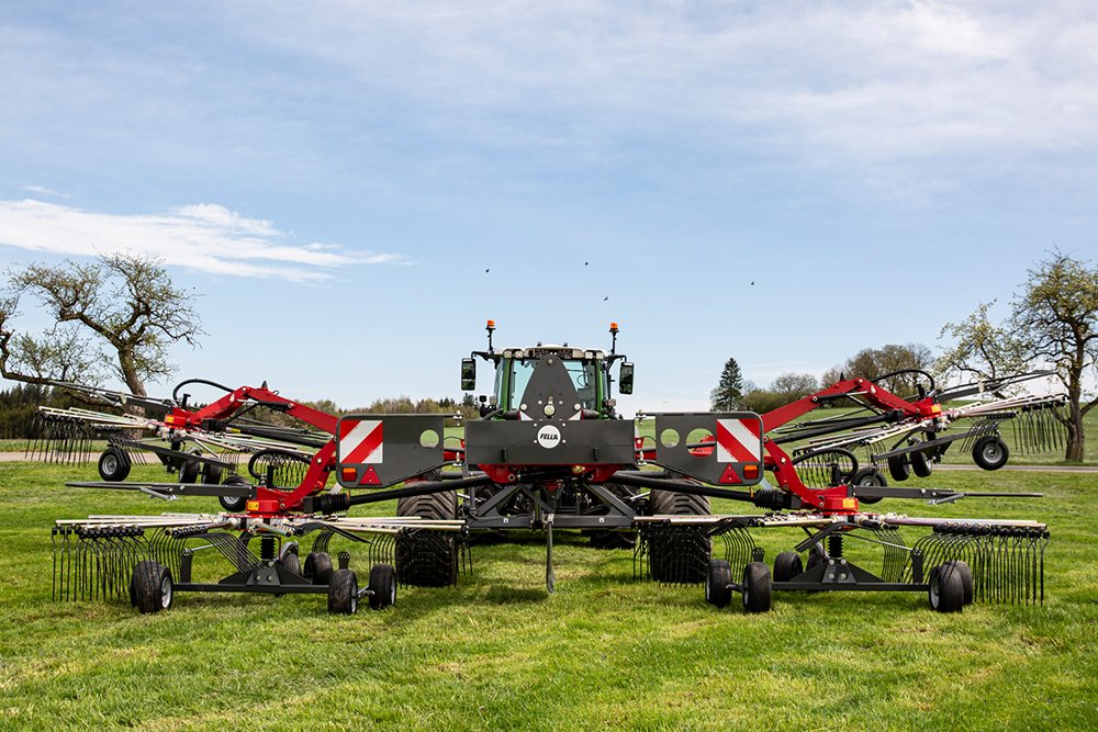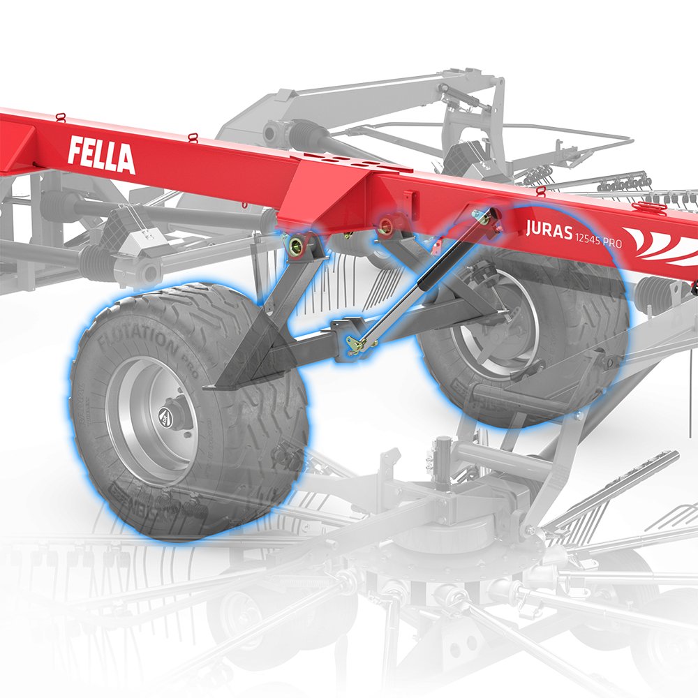 The JURAS four-rotor rakes are equipped with automatic, hydraulic and individually adaptable sequential control. This system controls the delayed raising and lowering of the rear pair of rotors and, as a result, enables you to deposit perfectly formed swaths at the end of the field. |