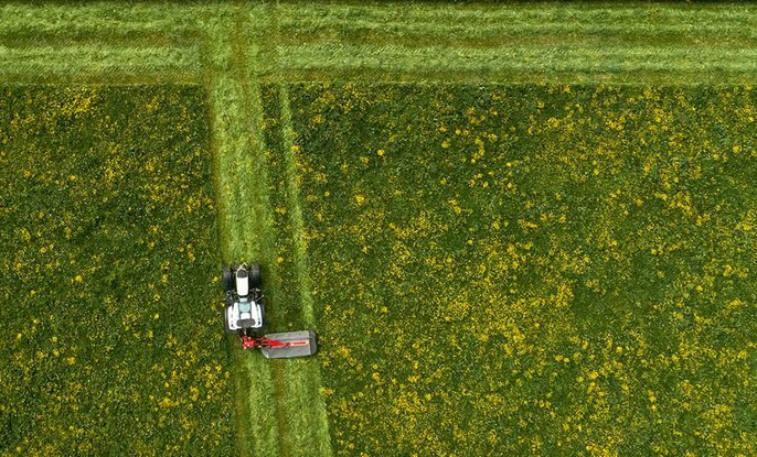FELLA mowers with this spur gear drive stand out thanks to a flexible range of applications as well as durable and reliable functionality with a consistently high mowing quality. The robustly designed and flat cutter bar with large mower discs combines an excellent conveying effect and even forage flow with low drag and extremely smooth running. The drive concept of the mower units stands out thanks to impressive efficiency and therefore guarantees efficient mowing under all conditions
