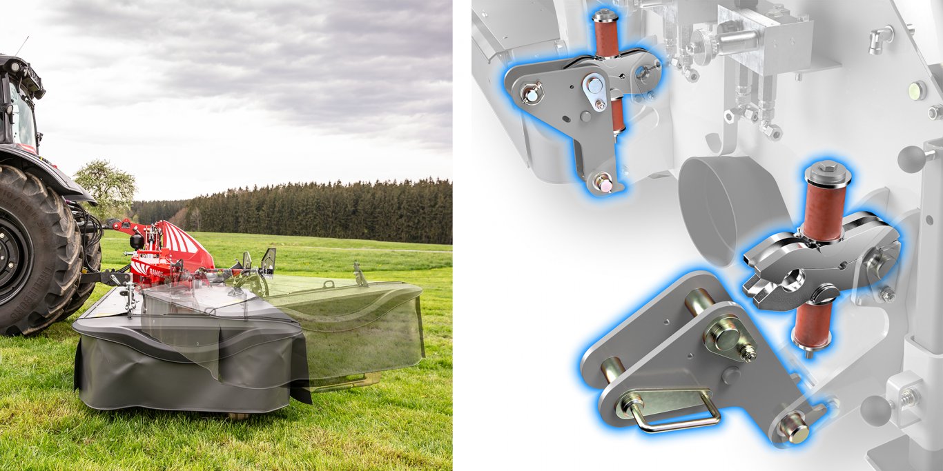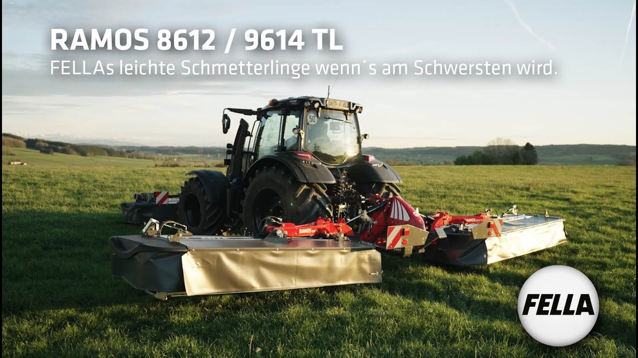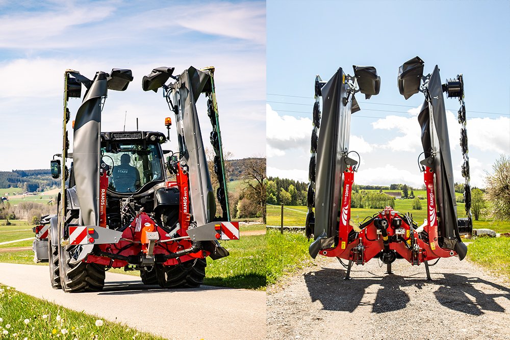 The new low-drag RAMOS series of mower combinations combine the benefits of a weight-optimised design with the latest FELLA drive technology, high cutting power and economic efficiency. The new drive concept's efficient power transfer enables fuel-efficient mowing at a reduced speed of 850 rpm and even the use of tractors with lower horsepower. |