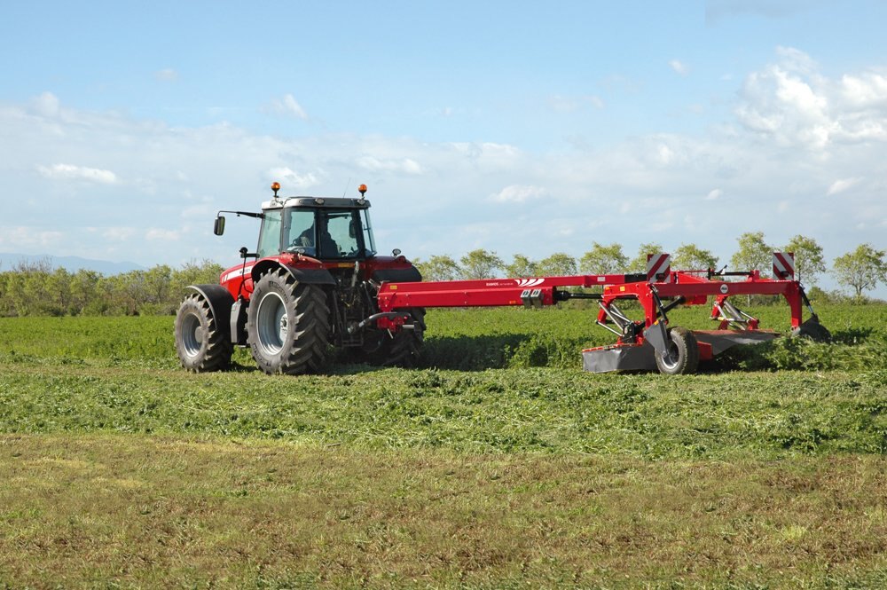 The machine is particularly characterised by its ease of handling and superb agility. The mower can be pivoted behind the tractor, both to the left and right. |