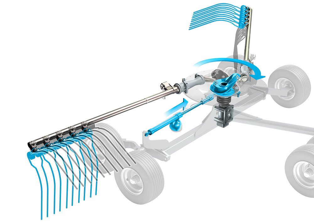 Cam track adjustment/work quality optimisation With the adjustment of the longitudinal and transverse inclination of the rotor and the cam track adjustment, the rake can be easily adapted to various conditions. |