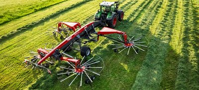 Four-rotor – central windrow deposition Four-rotor rake with variable working and swath width for large area use Optimum swath positioning...