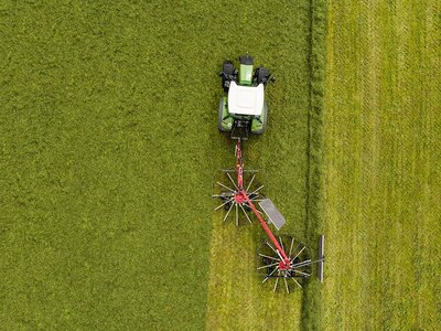 Dual rotor – lateral windrow deposition – traile Single and double-swath deposition both possible Neat raking, even on demanding terrain Low...