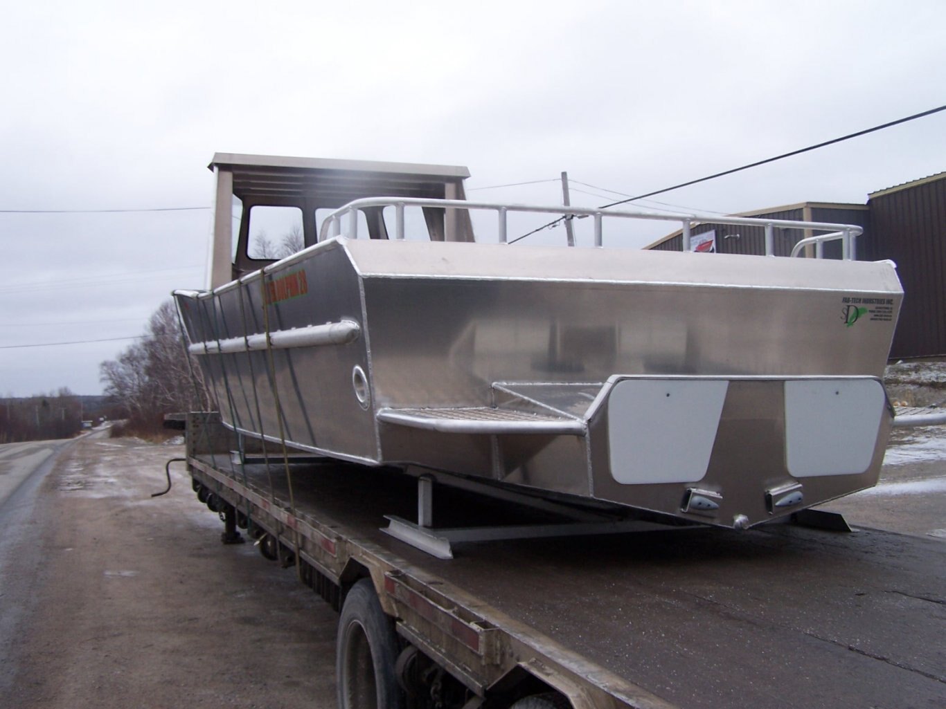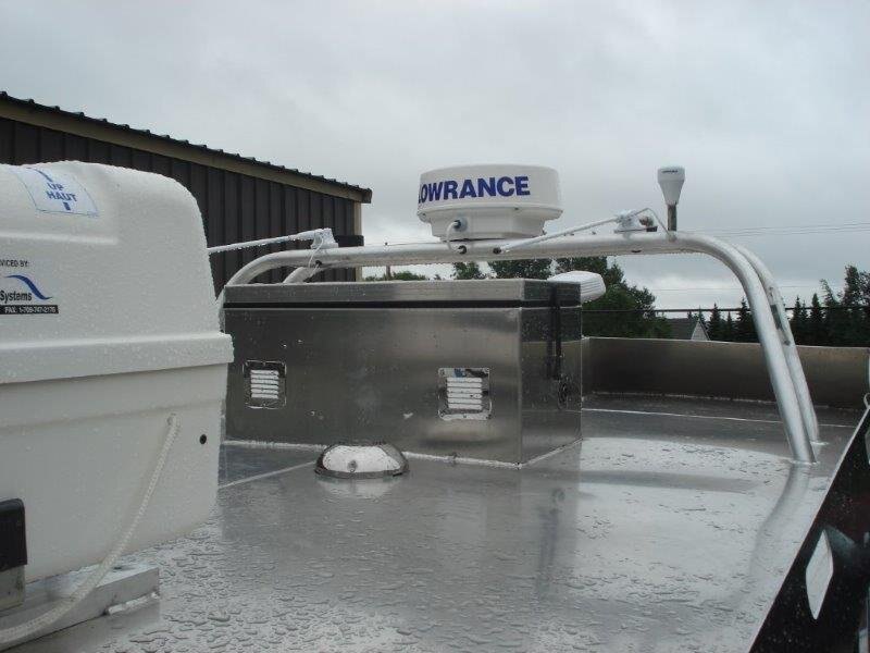 The Silver Dolphin Stand Up Cabin has been used for commercial fishing, hunting, aquaculture, tour operating, search & rescue and water taxi. This boat is equipped with an aluminum wheel house that may be custom designed to suit your specifications. The large tread plate floor may be used to accommodate a required work area, seating, storage or production equipment.