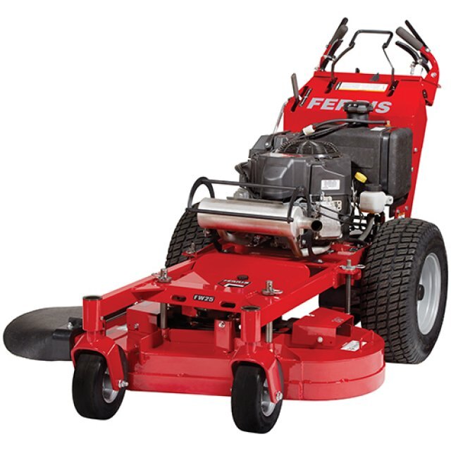 F W25 WALK BEHIND MOWERS With a choice of 36" and 48" cutting widths, FW25 dual hydrostatic commercial walk behind mowers will readily fit most small sheds and trailers and deliver superior control for a wide area lawn mower, navigating over thick grass, surface imperfections and hills while staying in its cutting lane.