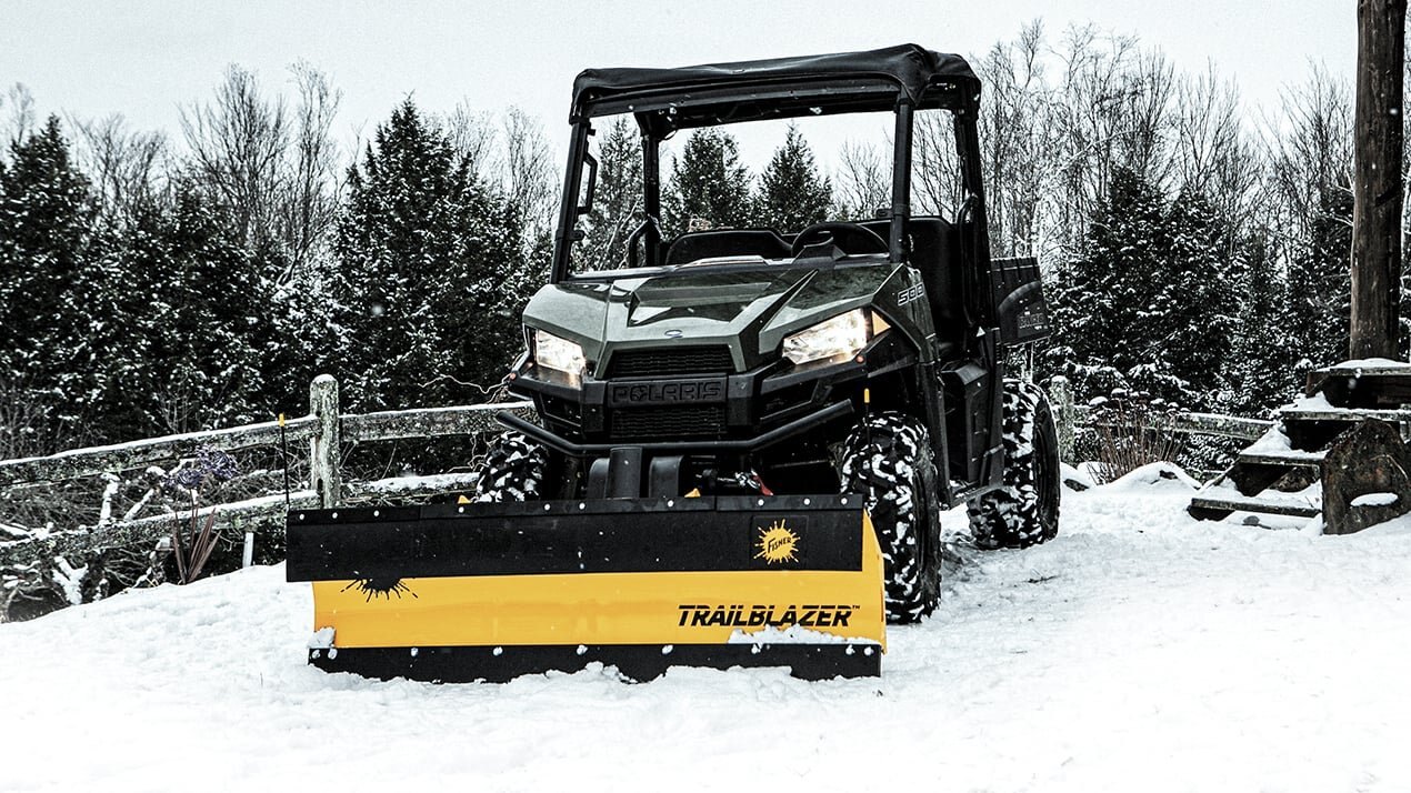 TMake short work of sidewalk, driveway, and pathway clean-up with the FISHER® TRAILBLAZER™ mid-duty UTV straight blade plows. Constructed of high-strength, low-alloy steel components that are both stronger and lighter than traditional steel, these plows are purpose-built with professional grade features for your mid-duty sport or recreational utility vehicle. The Sway-Frame™ design allows the blade to shift from side-to-side and aligns with the wheel track to help prevent hard-packed snow. Redefine utility and turn your UTV into a winter workhorse with the TRAILBLAZER mid-duty UTV plows. |