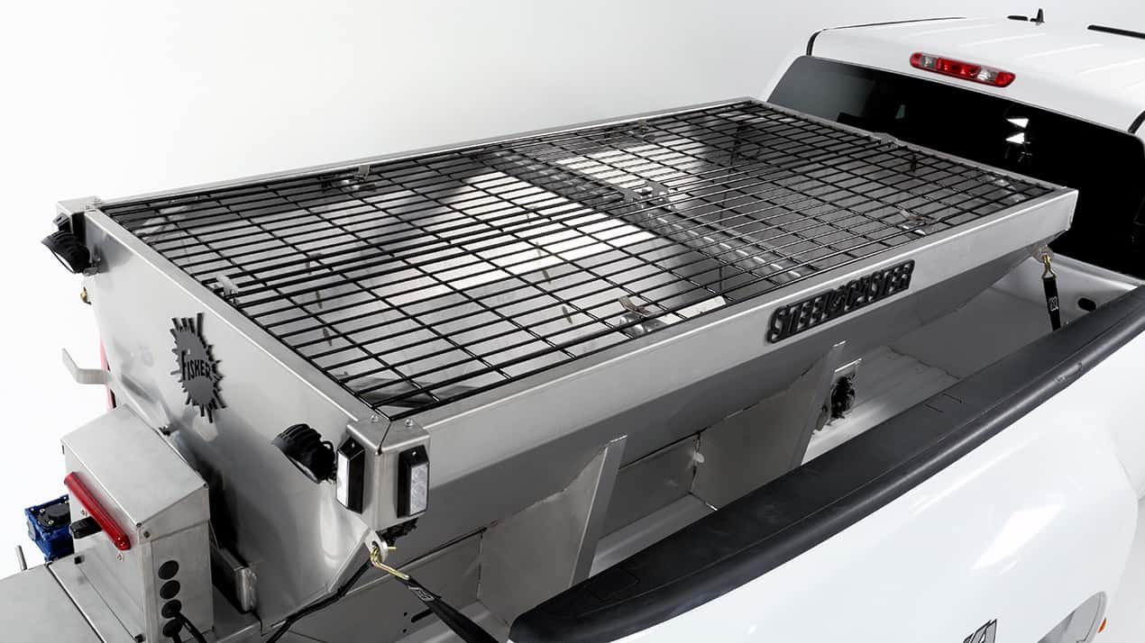 A steel top screen comes standard, which helps break up large chunks of de-icing material during the loading process to prevent clogging and bridging during spreader operation. |