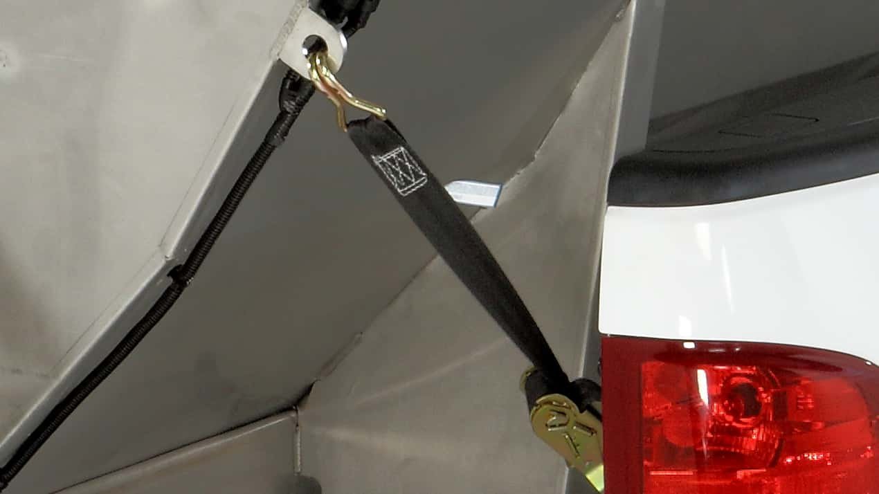 Tie-down points are included for strapping the hopper to the truck. For additional safety, bolting bars are also provided to attach the hopper to the vehicle and a Center High-Mounted Stop Light (CHMSL) is standard. |
