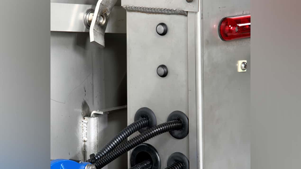 Conveniently connect accessories directly into the hub mounted in the back of the hopper. Accessories automatically integrate with the hopper control without having to run additional wires from the front of the truck. |