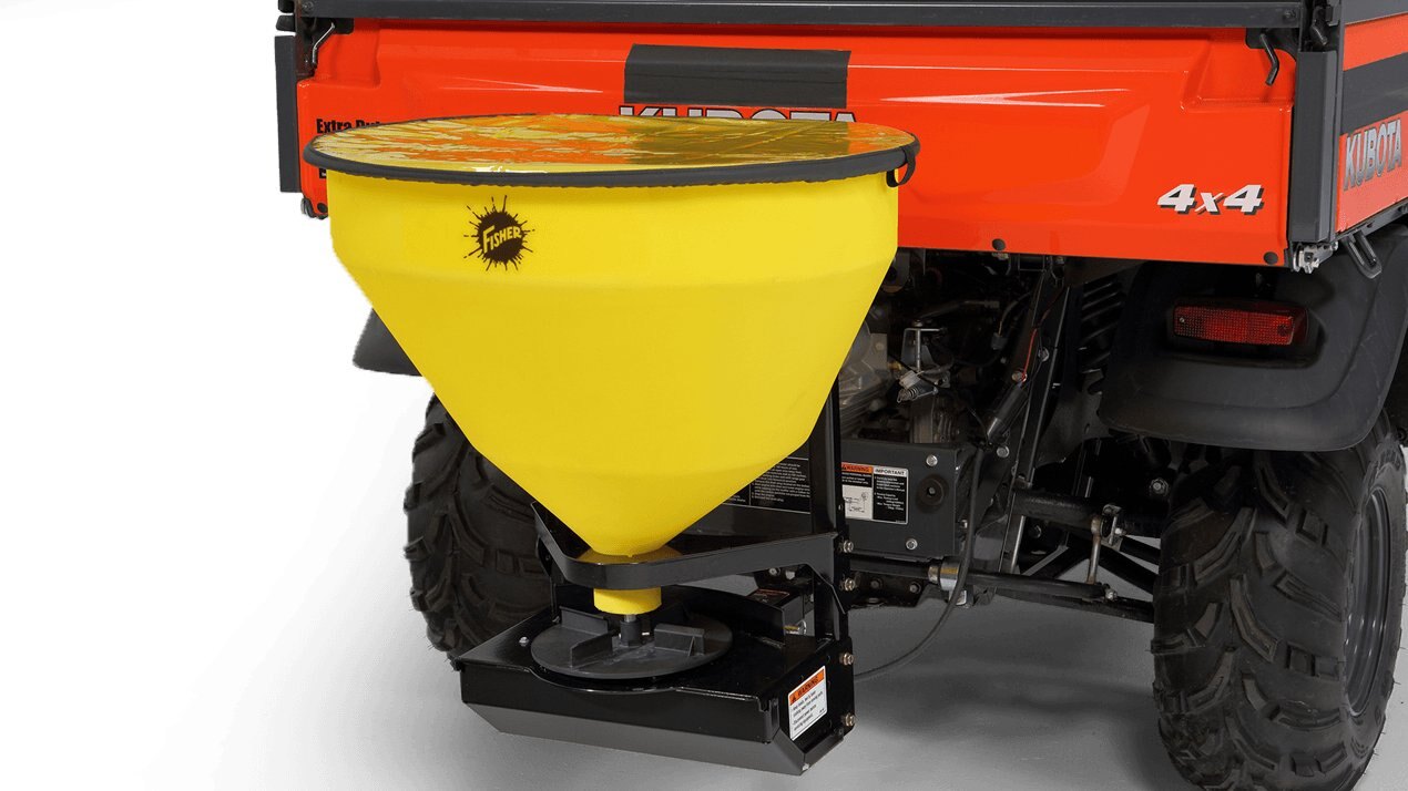 Embrace convenience with the FISHER® QUICK-CASTER™ 300W wireless electric tailgate spreader. It’s the ultimate in “plug and play” ice control. With a completely wireless key fob control, standard 2″ receiver hitch and 7-pin connector, it’s easy to plug in, load up and get to work. *Product shown with clear weather cover accessory |