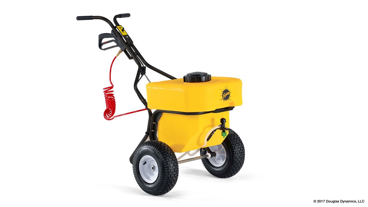 12-gallon poly tank with easy-fill cap handles any de-icing liquid. |