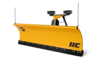 The HC snowplow features a massive 34"-tall, 11-gauge, powder coated steel blade that is available in 9' and 10' widths. The aggressive attack angle and blade overhang promote a clean scrape and snow rolling. |