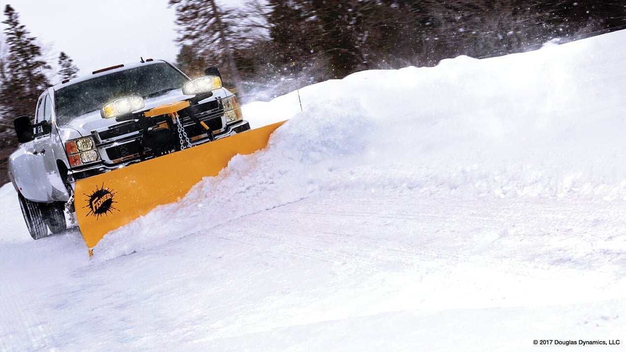 The FISHER® HD2™ snow plow is also available with skid-steer mounting options. Clear large parking lots with the ability to easily maneuver between cars and parking islands. The oscillating skid-steer mounting plate gives you six degrees of side-to-side travel that follows contours to improve scraping and cutting edge wear while reducing damage to parking lot surfaces. This design uses the skid-steer loader’s bucket hydraulics to lift and lower the blade for a more intuitive operator experience. |