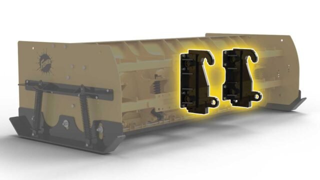 A common attachment plate and floating coupler makes installation easy with a wide variety of equipment and machinery, including skid-steers, wheel loaders, backhoes, and tractors. The floating coupler reduces negative down pressure from the vehicle, protecting against premature wear of the pusher cutting edge and components. |