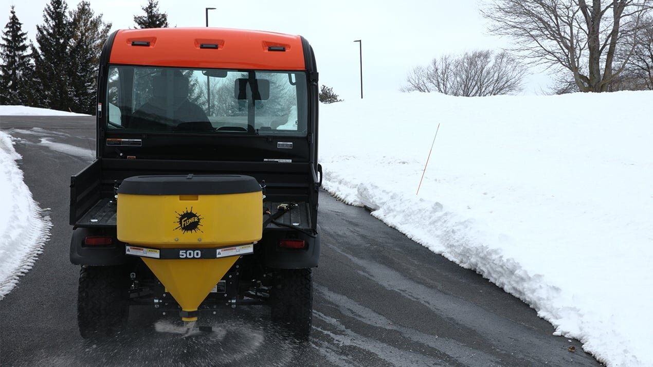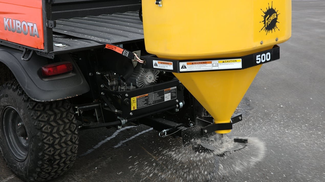 CLEARLY BETTER Designed for ice cold reliability, the FISHER® Low Profile tailgate spreaders provide a clear view from the cab when backing up. Perfect for spreading #1 rock salt, calcium chloride and other de-icing materials, these single-stage tailgate spreaders provide visibly better performance in an operator-friendly package. |