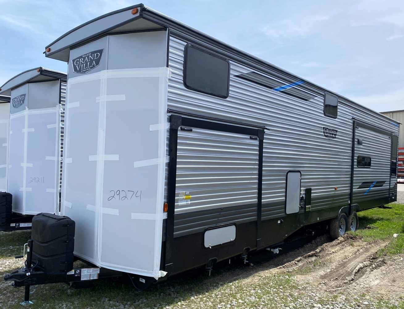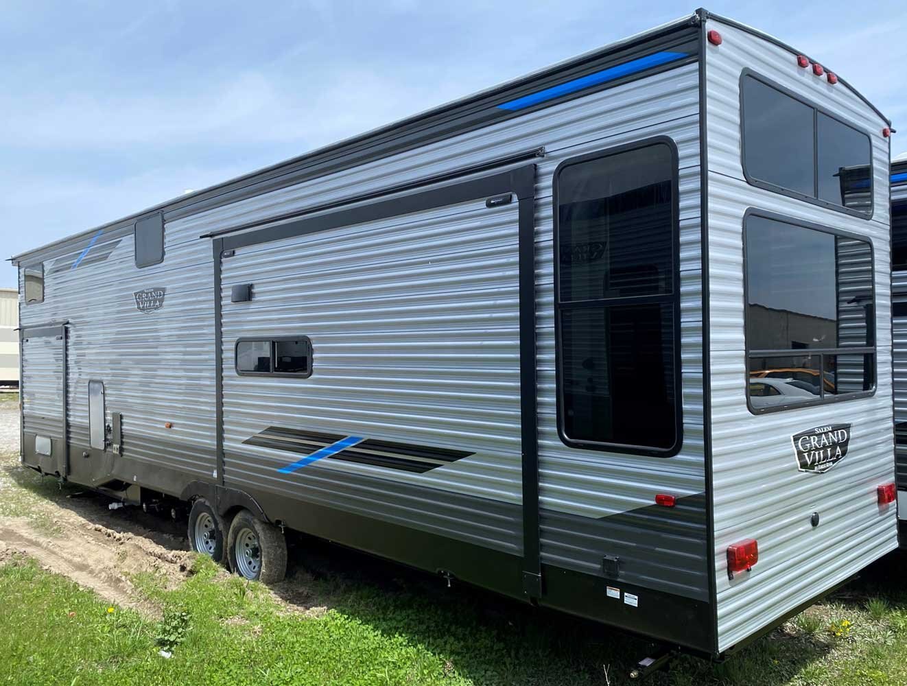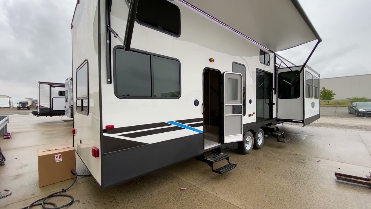 The Salem Grand Villa 42DL is another fantastic double loft destination trailer. In addition to the HUGE double loft bonus room for the kids, there is a front queen bedroom for the adults, plus additional sleep options in the living room. The bathroom includes a walk-in shower with a built-in seat, while the island kitchen provides residential appliances and plenty of room for all the cooking essentials.
