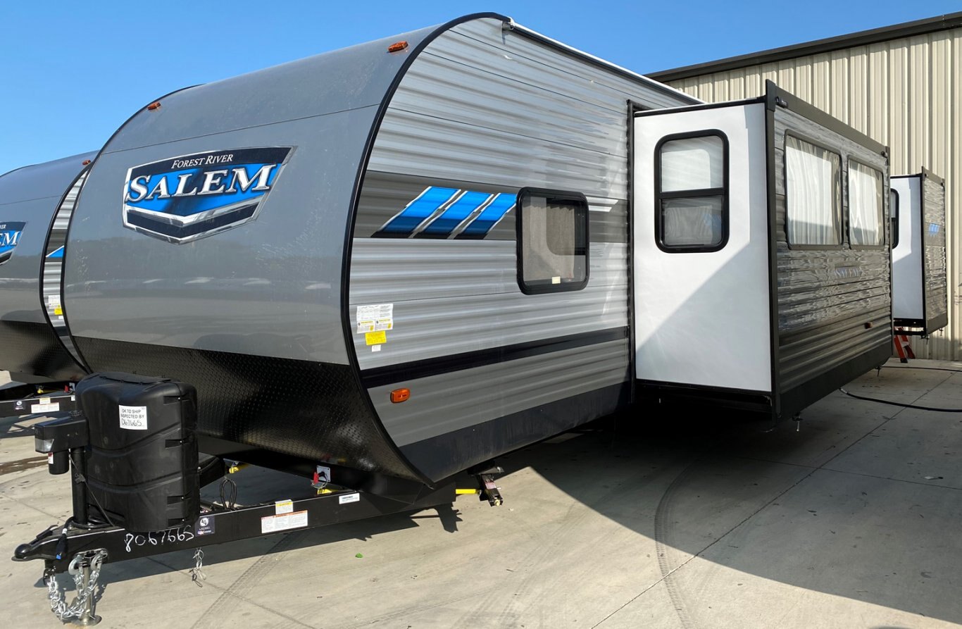 CCC (Cargo Carrying Capacity)is the amount of weight available for fresh potable water, cargo, additional optional equipment and accessories. CCC is equal to GVWR minus UVW. Available CCC should accommodate fresh potable water (8.3 lbs per gallon). Before filling the fresh water tank, empty the black and gray tanks to provide for more cargo capacity. Each Forest River RV is weighed at the manufacturing facility prior to shipping. A label identifying the unloaded vehicle weight of the actual unit and the cargo carrying capacity is applied to every Forest River RV prior to leaving our facilities. The load capacity of your unit is designated by weight, not by volume, so you cannot necessarily use all available space when loading your unit. |