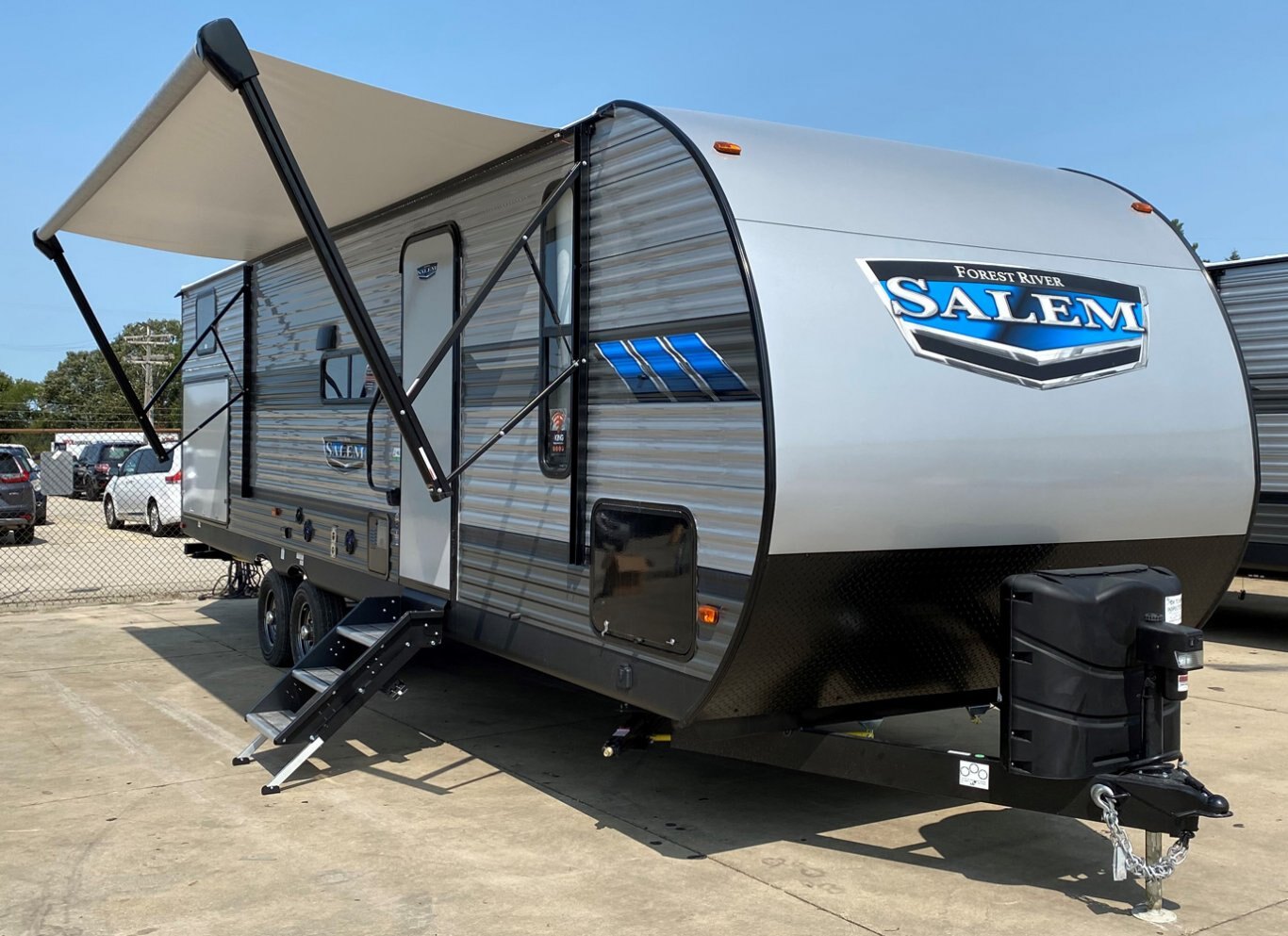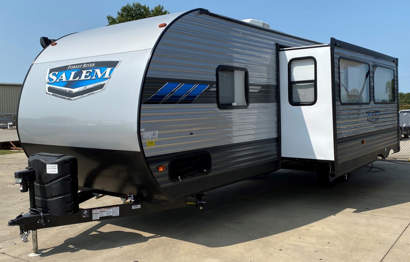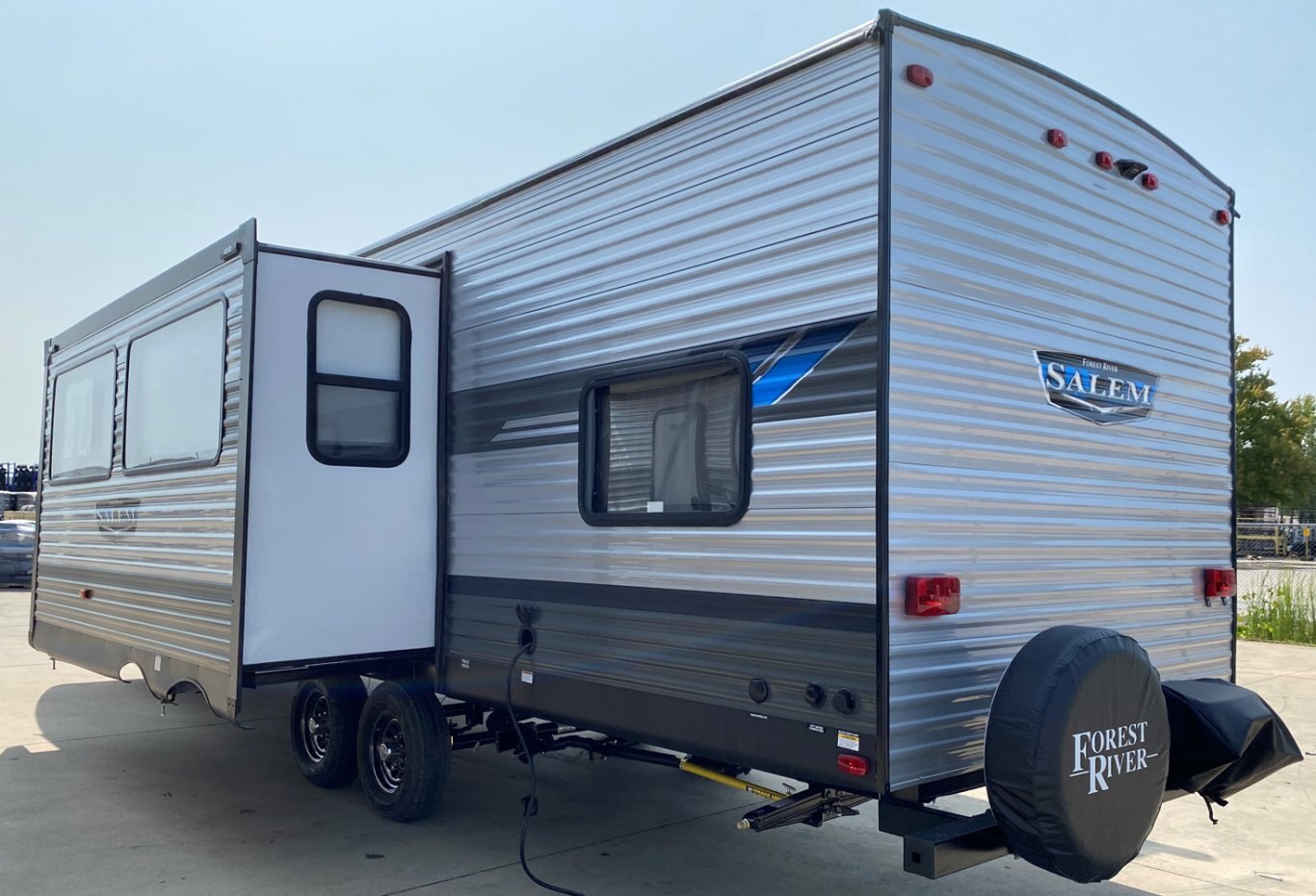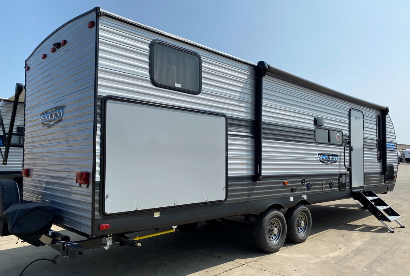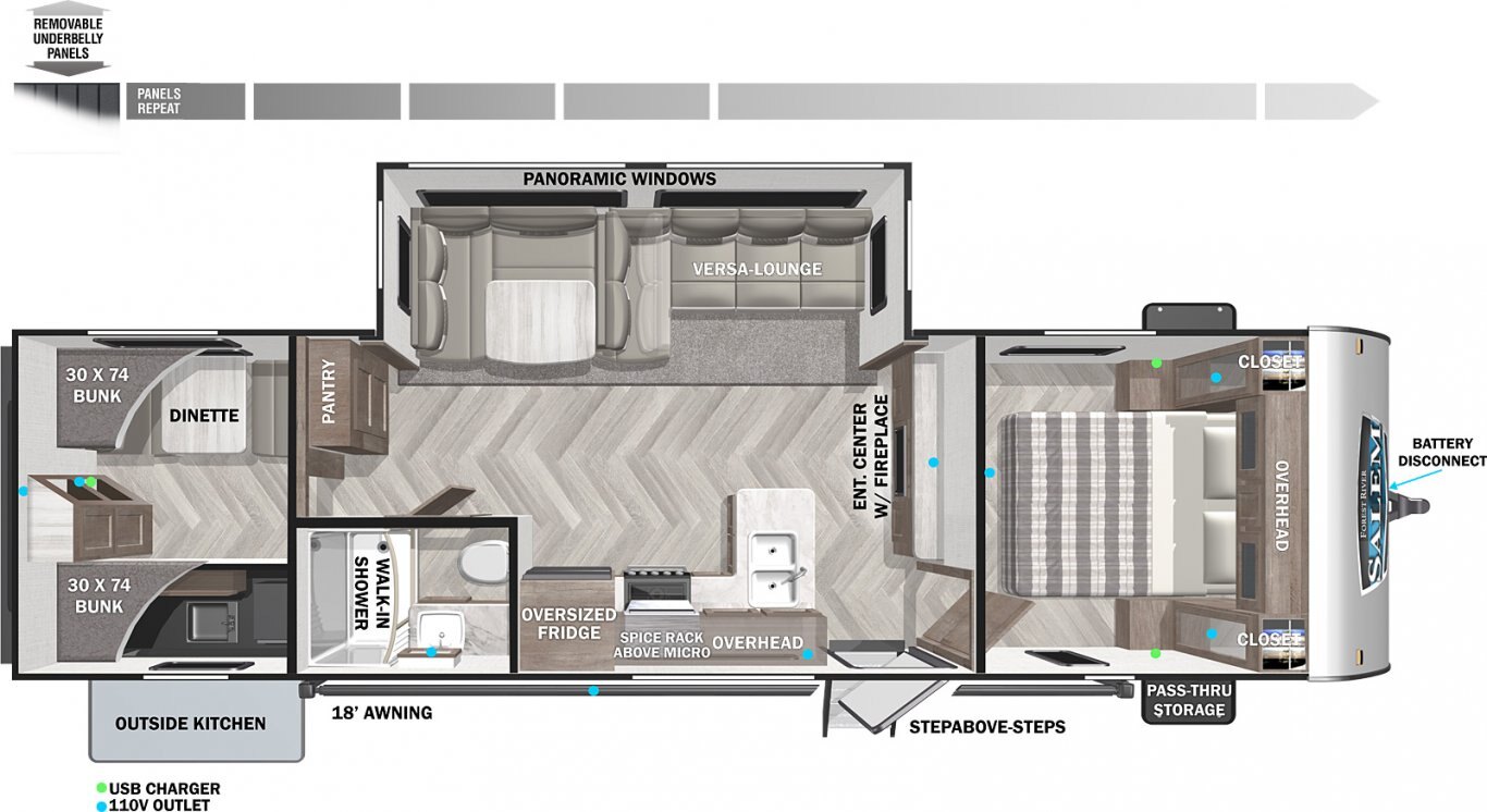 The 30KQBSS stands out with its spacious kitchen and panoramic campsite windows. You will love the Versa-Lounge, which can reconfigure and customize according to your needs—and conveniently below is the Stow N Go Storage! This model also has a standard fireplace (heater) and 11 CU. FT. refrigerator for all the comforts of home.