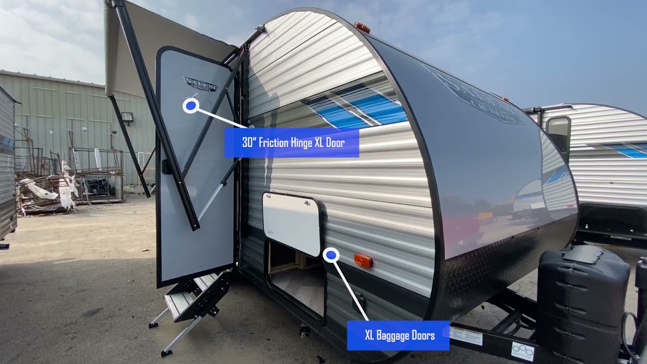 The 171RBXL is a perfect lightweight option weighing in at less than 4,000lbs with a spacious rear bath. The innovative EZ Bed Lift System increases your living space, folding up for a sofa and down for a queen bed. The kitchen gives you a booth dinette, solid surface countertops, burners plus oven, and glass-fronted cabinets.