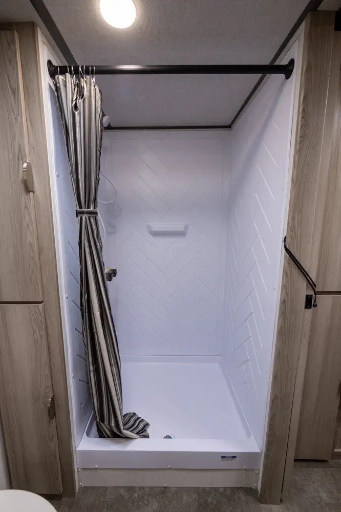 • Large 36x24 Shower Pan w/ Shower Surround + Waterproof Retractable Shower Door (No Curtain)