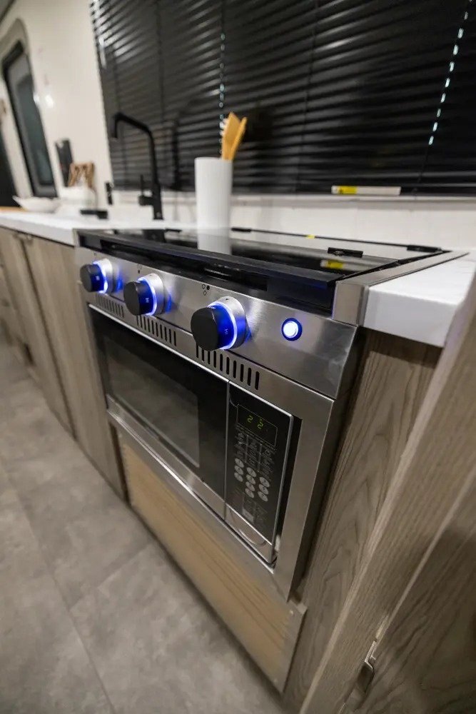 - 3-in-1 Cooker w/ Convection Oven, Microwave, 3 Burner Gas Cooktop