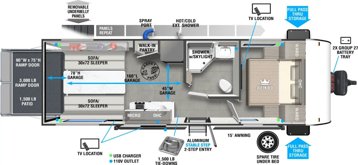 • MAX COLD WEATHER Package: 12V Heated Tank Pads on all Holding Tanks (Fresh, Grey, and Black) w/ AutoStart below 48°F + Fully Enclosed Underbelly Using Industry Leading AccessiBelly Panels + Insulated Flooring for Heat Capture and Deflection