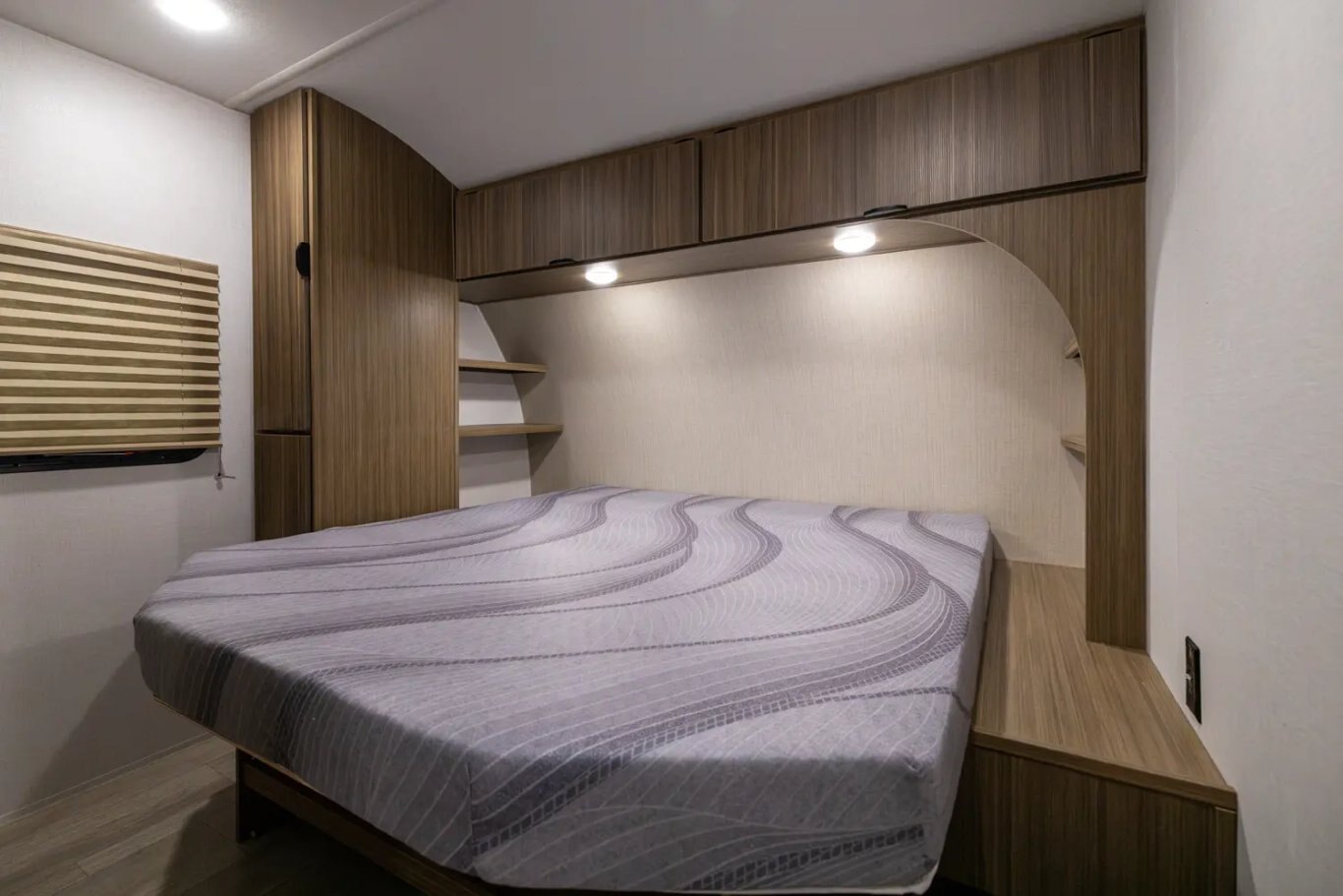 Standard Features: Waterproof Portable FM / Bluetooth Speaker System Extra Thick Luxury Vinyl Flooring - NO CARPET! Largest in Class Opening Panoramic Windows Large 36x24 Shower Pan w/ Shower Surround + Waterproof Retractable Shower Door (No Curtain) Extra Large Holding Tanks for Extended Camping - 75% Larger Than Average! 26" Entrance Doors w/ Friction Hinge to Shut Slow 7-Way Plug and Chain Holder for Towing Ease 4 - 6 USB Ports w/ USB A and USB C Compatibility for Phone and Tablet Charging Large Baggage Doors for Exterior Storage Residential High Rise Kitchen Faucet Backup Camera Ready (Harness and Wiring Installed) 30 Amp Service w/ Auto Detect Converter (Works with Multiple Battery Types) 13.5K BTU Roof Mounted Air Conditioner 20K BTU Furnace Microwave in Kitchen 60,000BTU Extra Large On Demand Hot Water Heater 2 Burner Cook Top with Glass Cover Mirrored Vanity with Medicine Cabinet (available on most models) Omni Directional Digital TV Antenna Water Heater By-Pass Roof Mounted Solar Inlet on Roof Side Mounted Solar Inlet on Camp Side