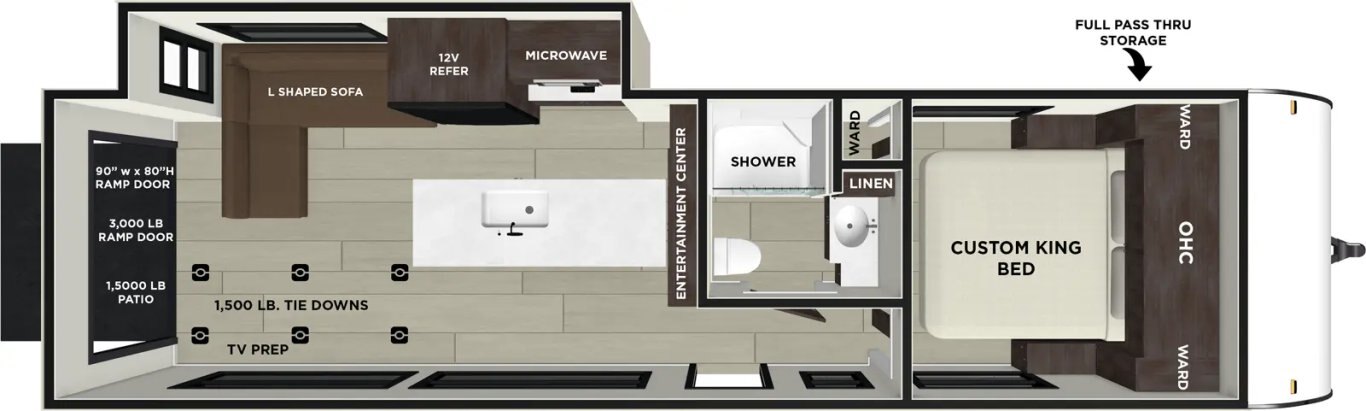 • 1,500LB Tie Downs for Securing Gear, Strategically Placed Throughout Each Floorplan