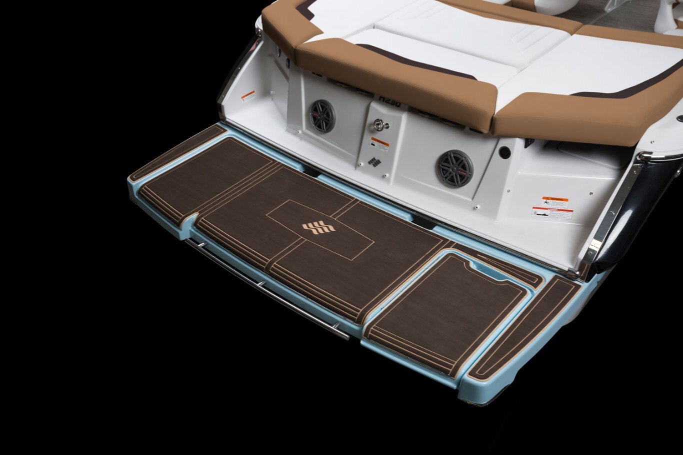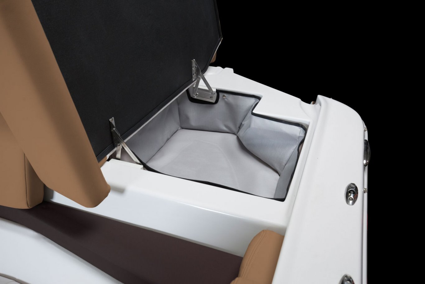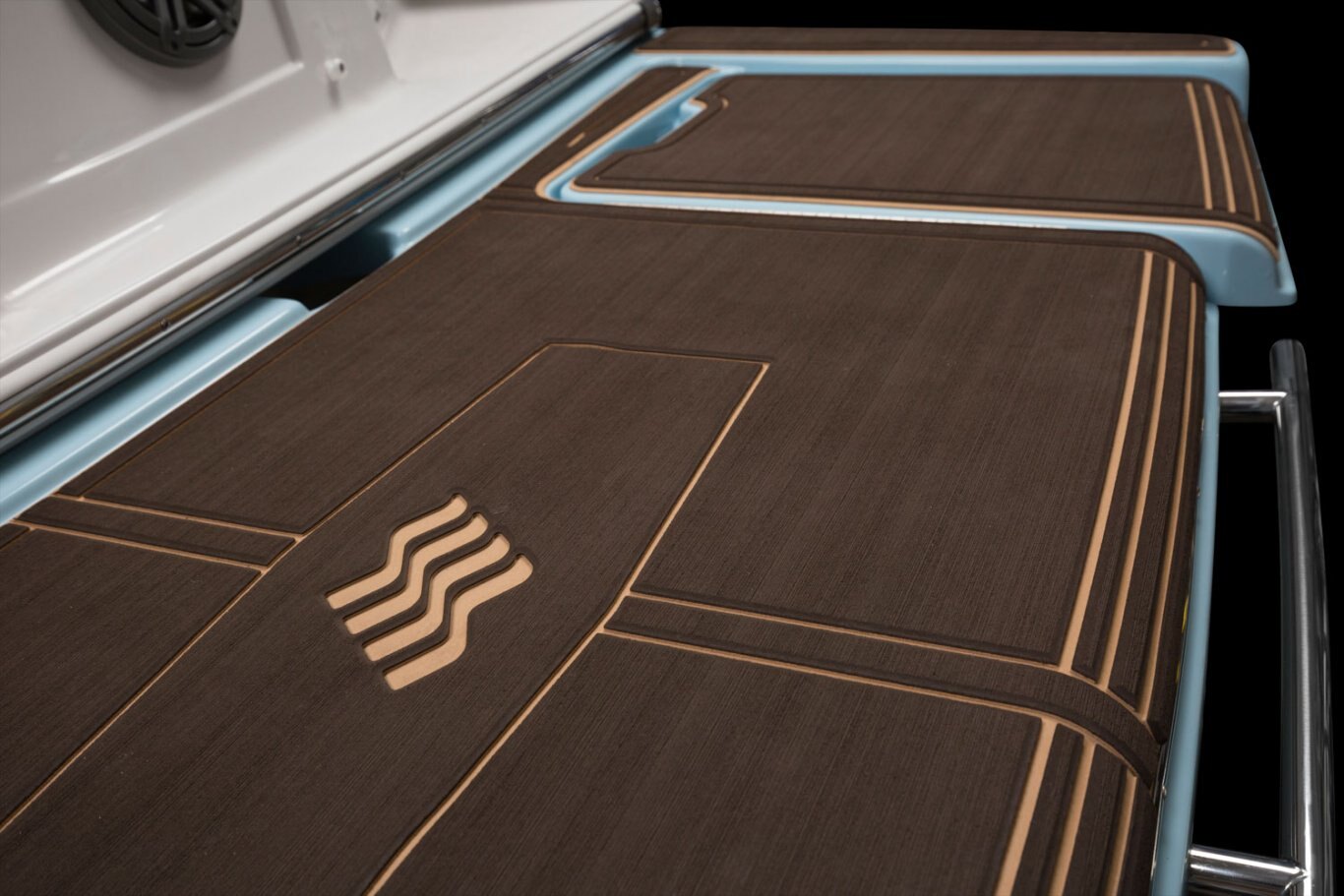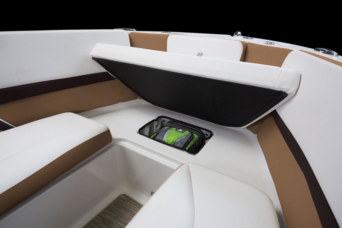 Assist handle(s), stainless steel Beverage holder(s), stainless steel Coaming pads w/ rich hand-fitted vinyl & comfort padding Cooler(s), built-in Courtesy lights Fiberglass liner, skid-resistant, self-draining Interior color scheme, choice of color Port console, glove box Seating, bow cushions, hinged Seating, cockpit, U-shaped Seating, ComfortRide, flip-up bucket bolster(s) Ski locker, in-floor, w/ gas-assist hinged lid & mat Storage, beneath sundeck, mesh-sided bags Storage, bow & cockpit, beneath seats Storage, bow, behind backrest at helm & passenger consoles Storage, cockpit, sidewall storage w/ beverage holders Sundeck, aft Sundeck, aft w/ chaise lounge & aft-facing lounge seat Upholstery, premium contoured vinyl w/ custom detailing Walk-thru transom Water intrusion management system |