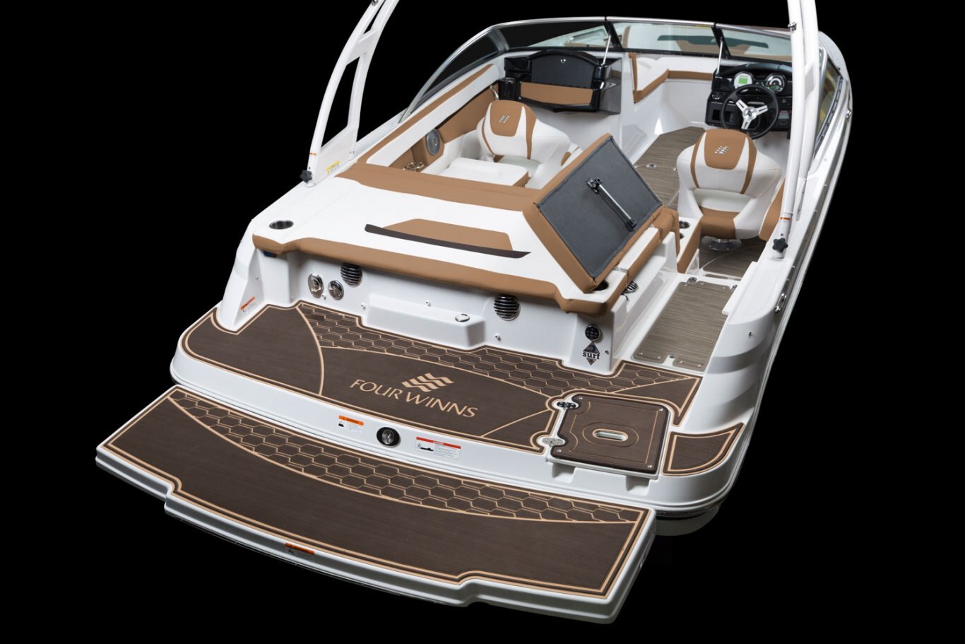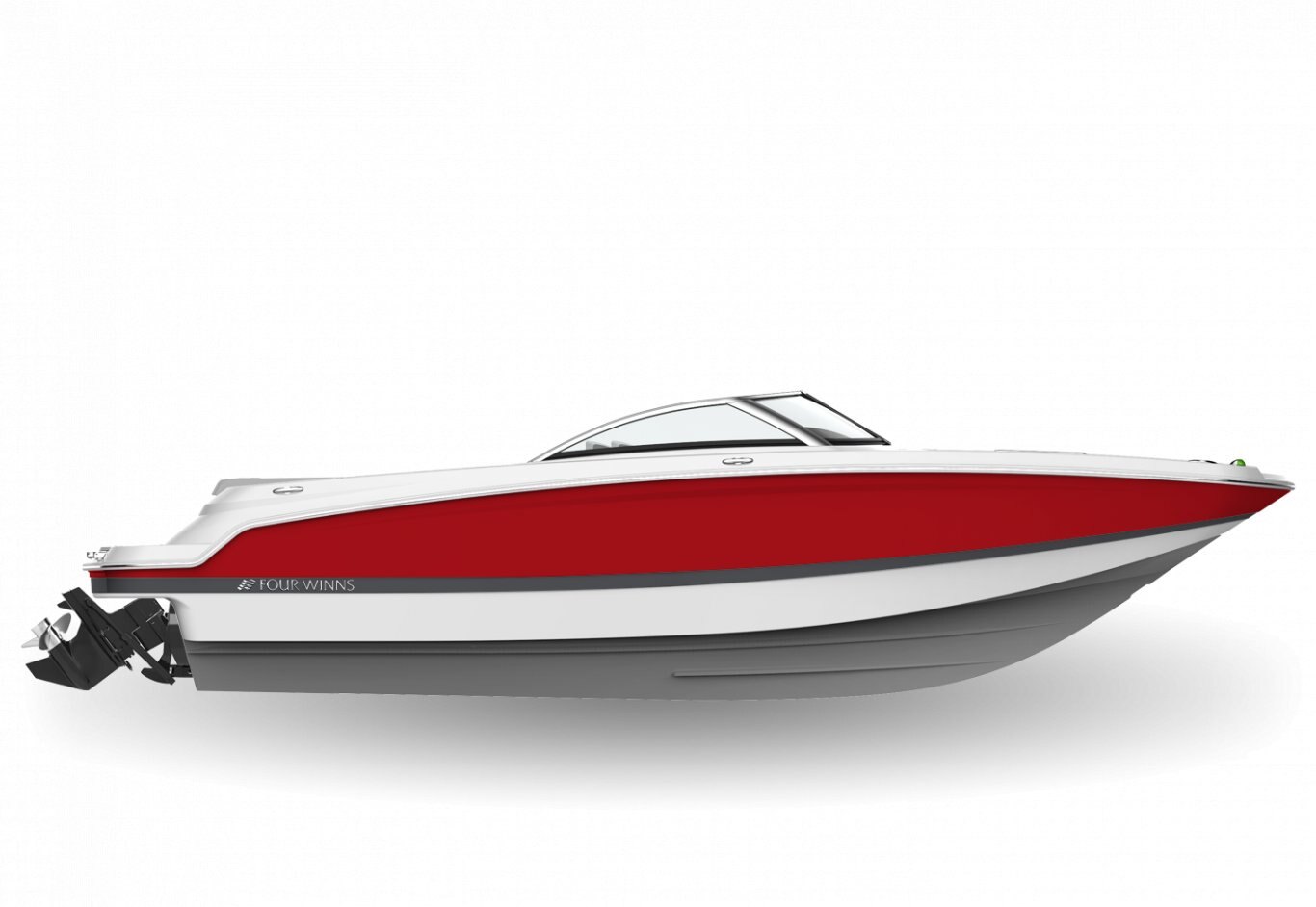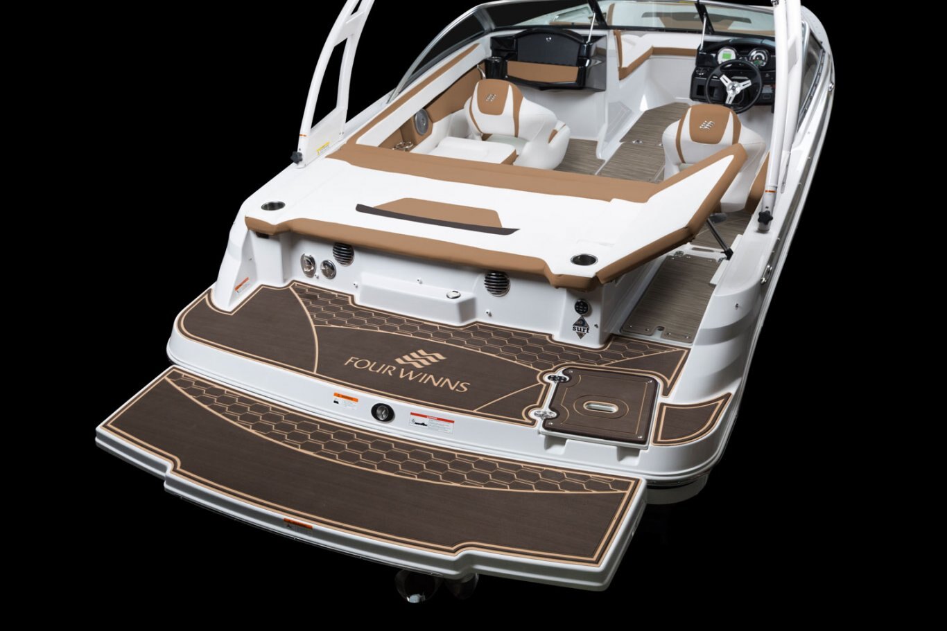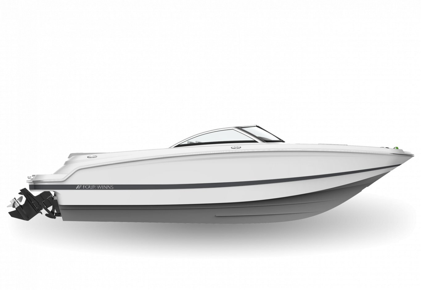 Bow & stern eyes, stainless steel Bow rails, stainless steel Cleats, fixed, stainless steel Exterior accent stripe, choice of color Exterior color choices Exterior color scheme, choice of color Fiberglass stringer system Horn Ladder, stern, hidden, telescoping Meets applicable USCG & Canadian regs; NMMA certified using ABYC stds. Navigation lights, LED Rub rail w/ stainless steel insert Stable-Vee® hull Swim platform, bow Swim platform, stern Thru-hull fittings, stainless steel Windshield w/walk-thru, full-height, curved glass, exclusive design Winning edge owner protection plan |