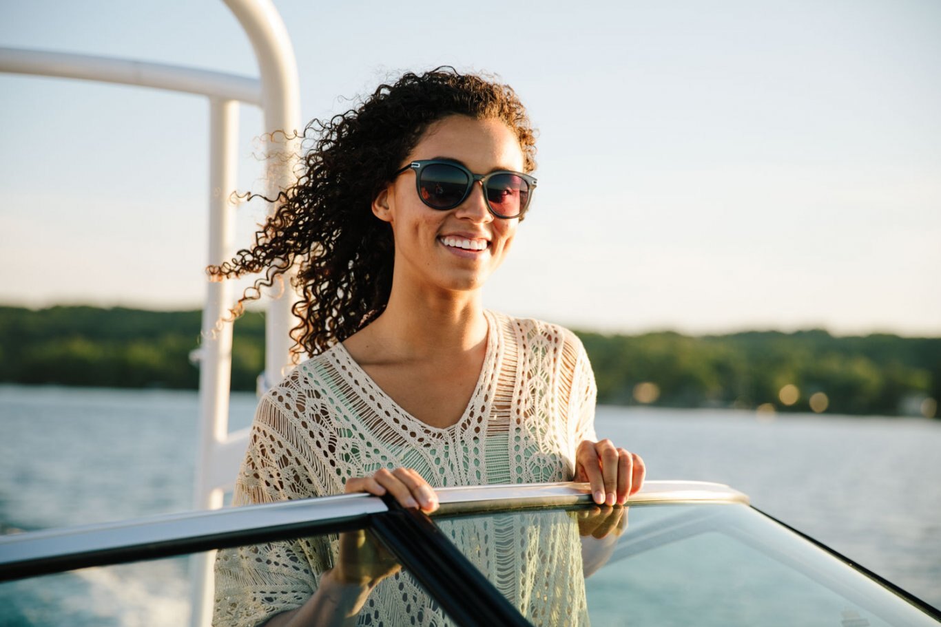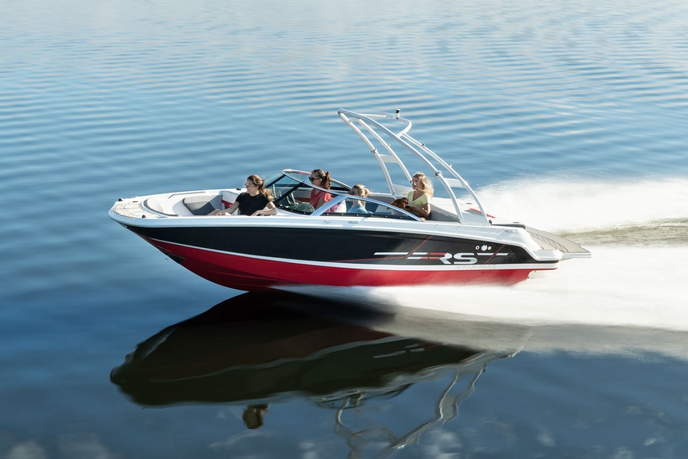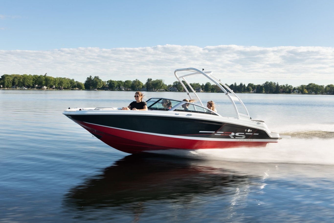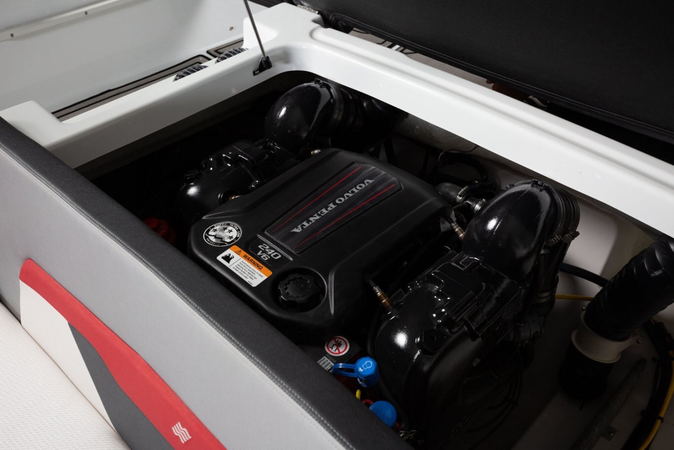 Bow & stern eyes, stainless steel Bow rails, stainless steel Cleats, fixed, stainless steel Exterior accent stripe, choice of color Exterior color choices Exterior color scheme, choice of color Fiberglass stringer system Horn Ladder, stern, hidden, telescoping Meets applicable USCG & Canadian regs; NMMA certified using ABYC stds. Navigation lights, LED Rub rail w/ stainless steel insert Stable-Vee® hull Swim platform, bow Swim platform, stern Thru-hull fittings, stainless steel Windshield w/walk-thru, full-height, curved glass, exclusive design Winning edge owner protection plan |