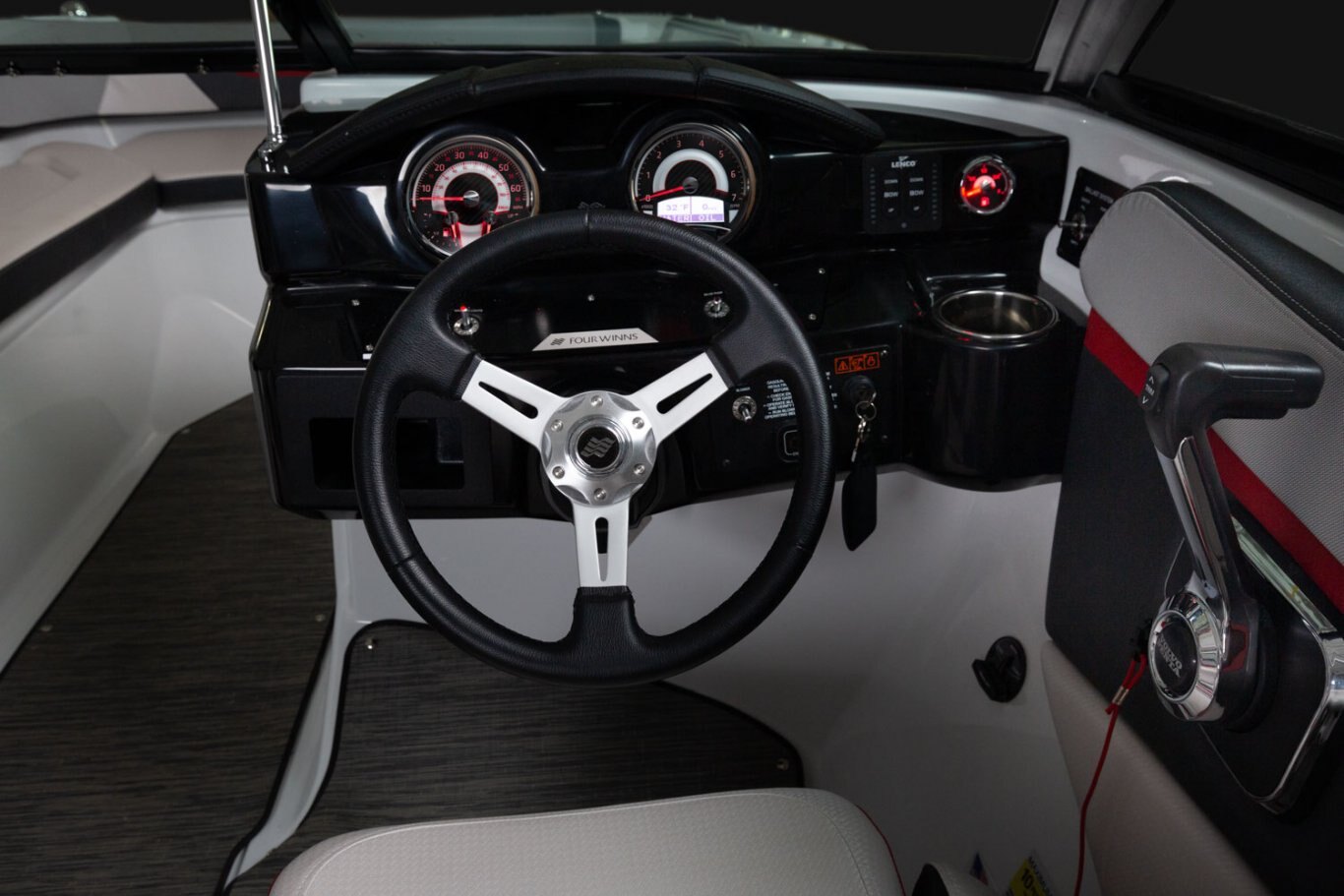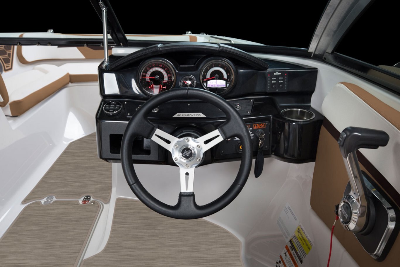 Custom gauges, fog-resistant Dash, top-stitch detail & precision textured trim Emergency engine shut-off Instrumentation, helm: multifunction digital gauges w/hour meter & GPS speed Lighted switches, LED Steering wheel, deluxe, tilt |