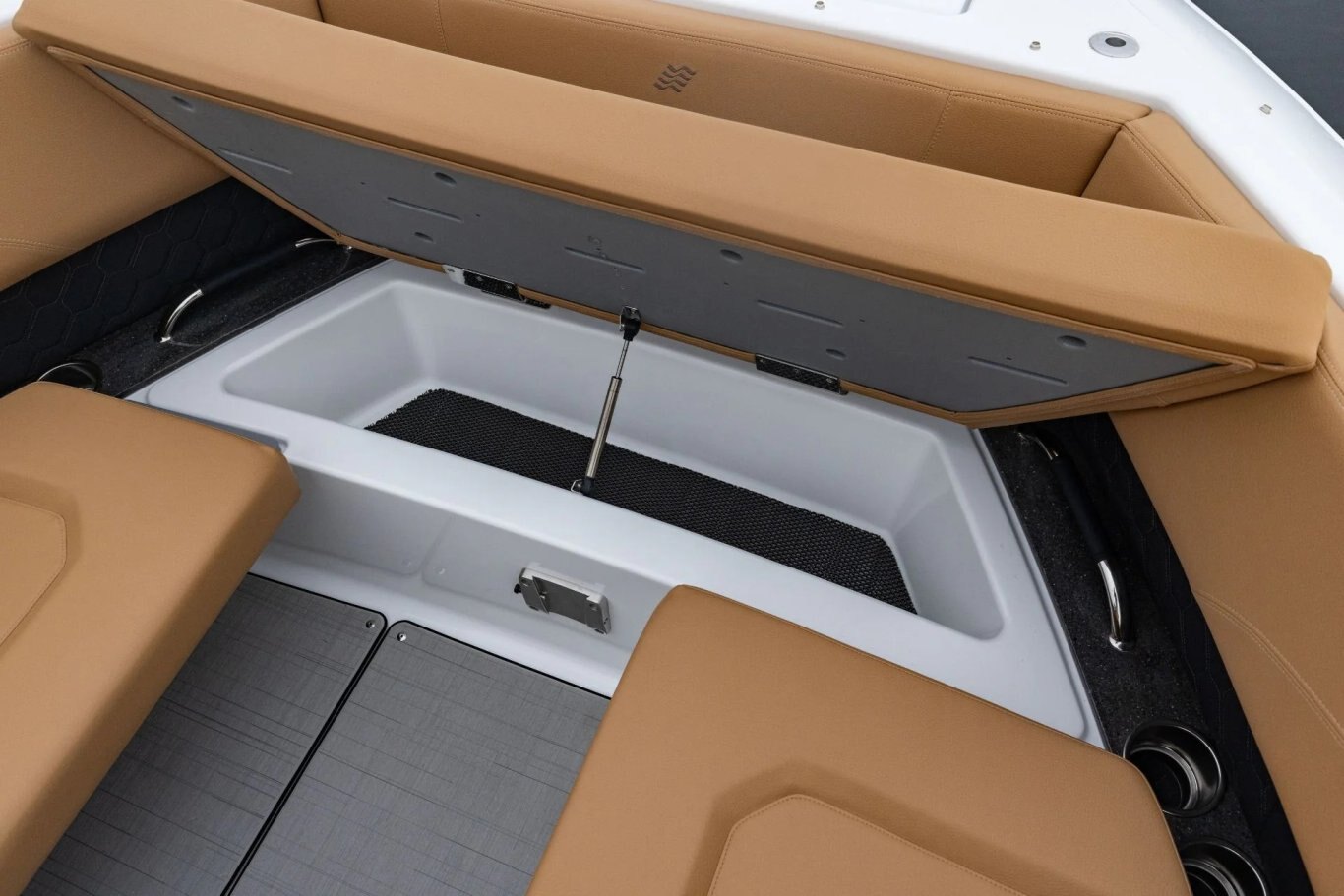 The signature curves, a true hallmark of the brand, paired with carefully selected premium materials, create a boat that blends aesthetics with exceptional performance. Stretch out on the wide aft swim platform, thoughtfully designed for effortless relaxation and easy moments by the water. For the watersport enthusiast, an optional dedicated mast is available, further enhancing the boating experience.