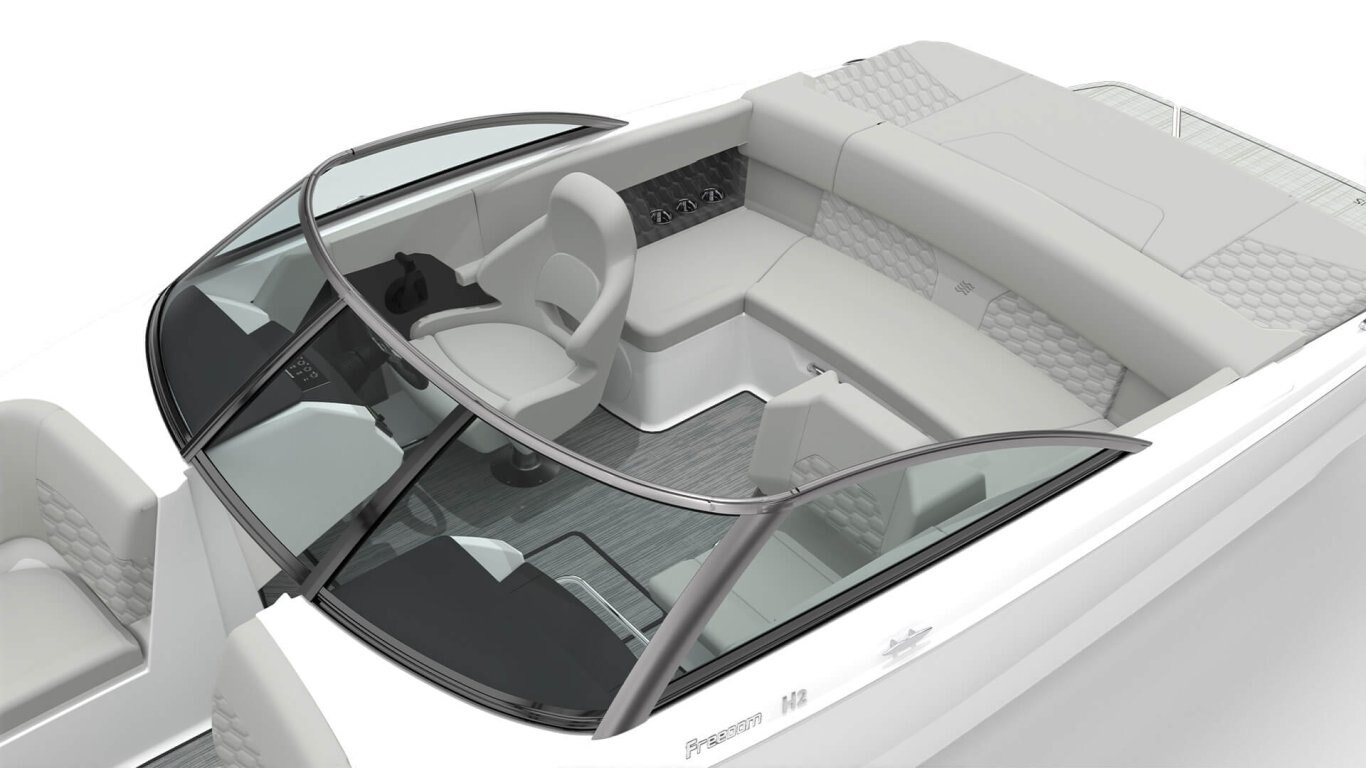 The H2 Freedom elevates every on-water experience with the perfect blend of performance, comfort, and versatility. Featuring an expanded seating area and a powerful Mercury 250-horsepower sterndrive engine, this 22-foot model is designed for both relaxed cruising and thrilling watersports. Whether entertaining family or chasing adventure, the H2 Freedom delivers effortless handling, modern styling, and a ride that’s as smooth as it is exhilarating.