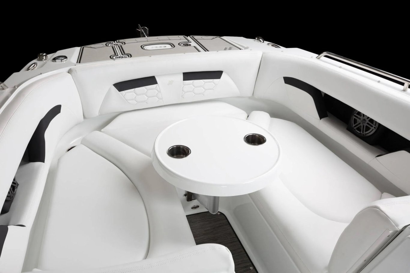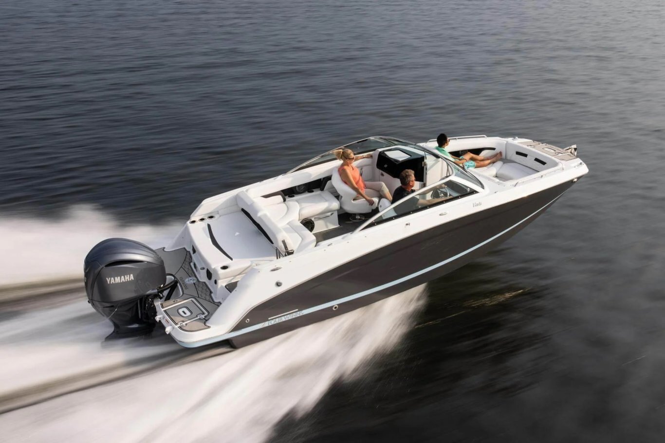The U-shaped cockpit seating allows for spacious relaxation, while built-in coolers ensure your refreshments are always within reach. With a walk-thru transom and attention to every detail, this boat delivers an elevated experience on the water.
