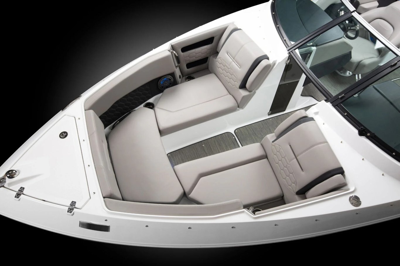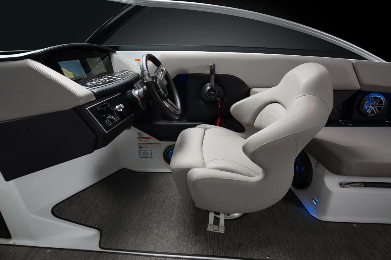 As the largest in the Surf lineup, the H6 Surf boasts refined interior styling, a generous beam, and deep seating that welcomes up to 14 onboard. Premium vinyls, ergonomic seating, and upscale finishes create an inviting space whether you’re prepping gear or kicking back post-session. An expansive swim platform and versatile aft lounge make transitions between surf and sun seamless, while thoughtful storage throughout keeps everything in place.