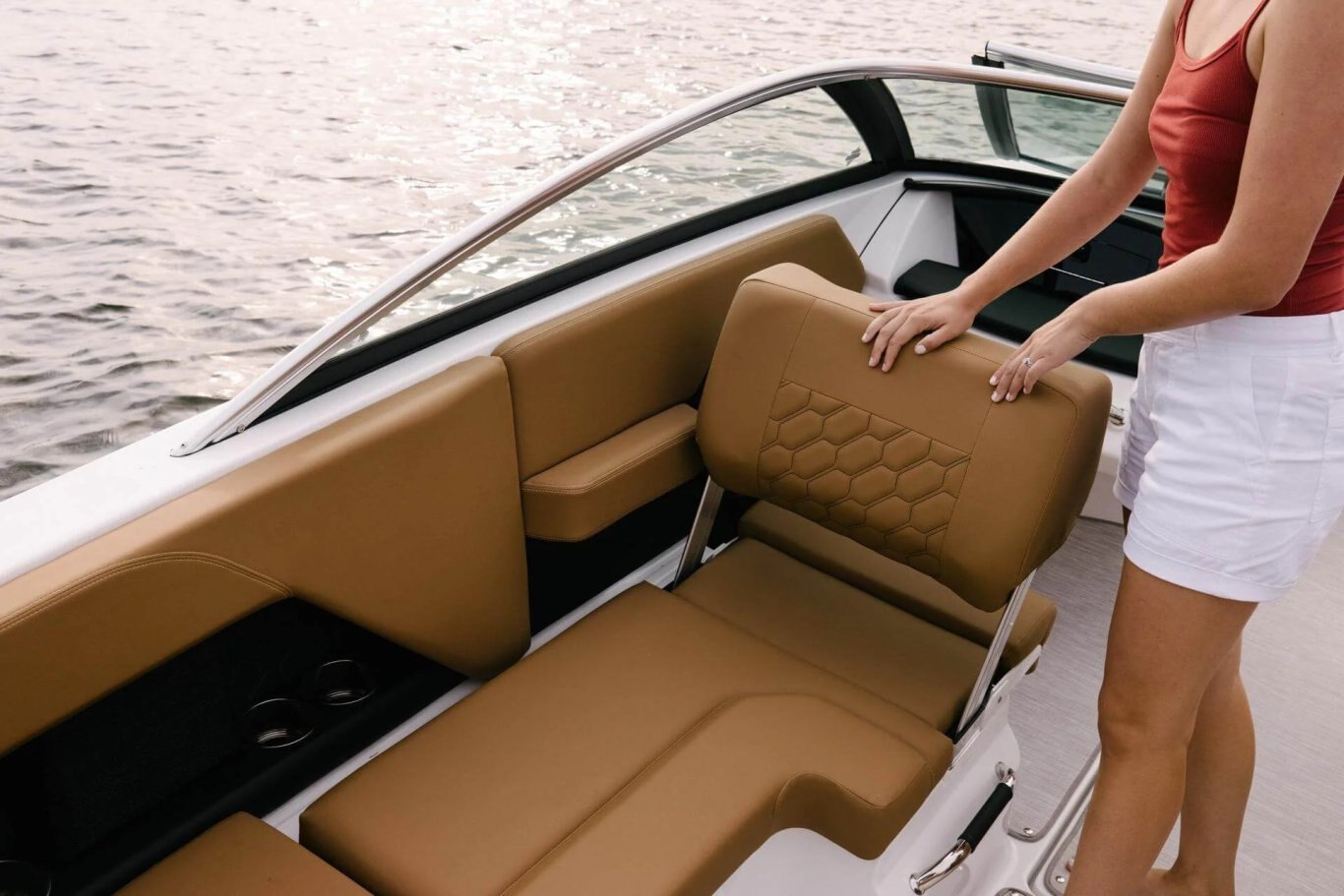 The H2 features an innovative U-shaped cockpit with a flip seat, providing an expansive seating area perfect for socializing and relaxation. Ample storage beneath the seat ensures you can bring all your essentials without compromising on space. The H2's thoughtful design delivers unmatched comfort and convenience.