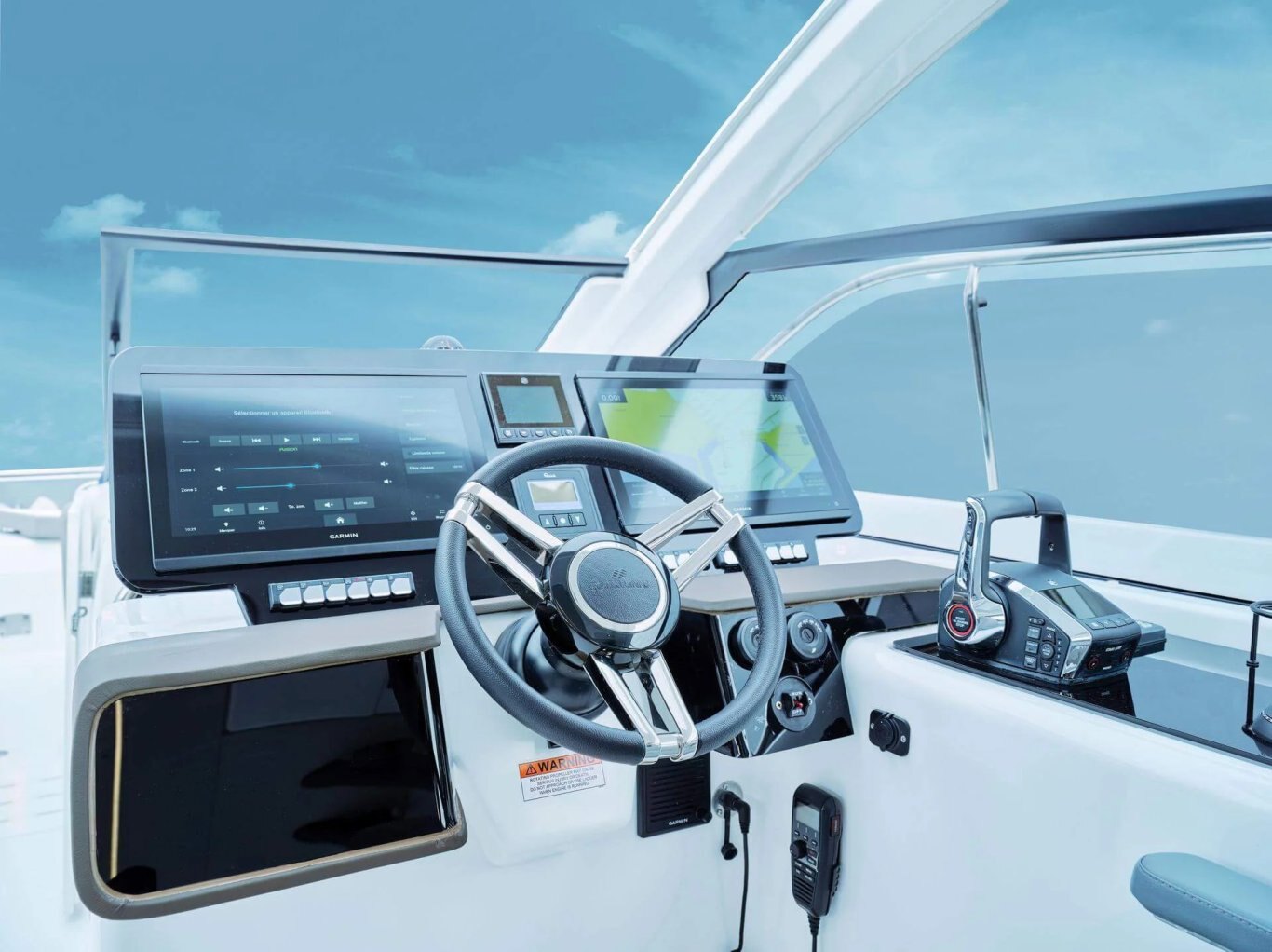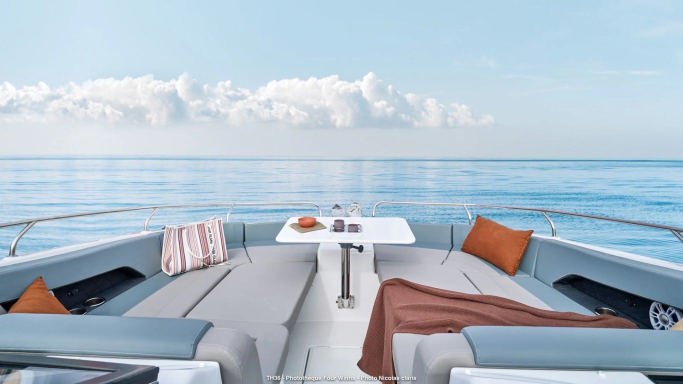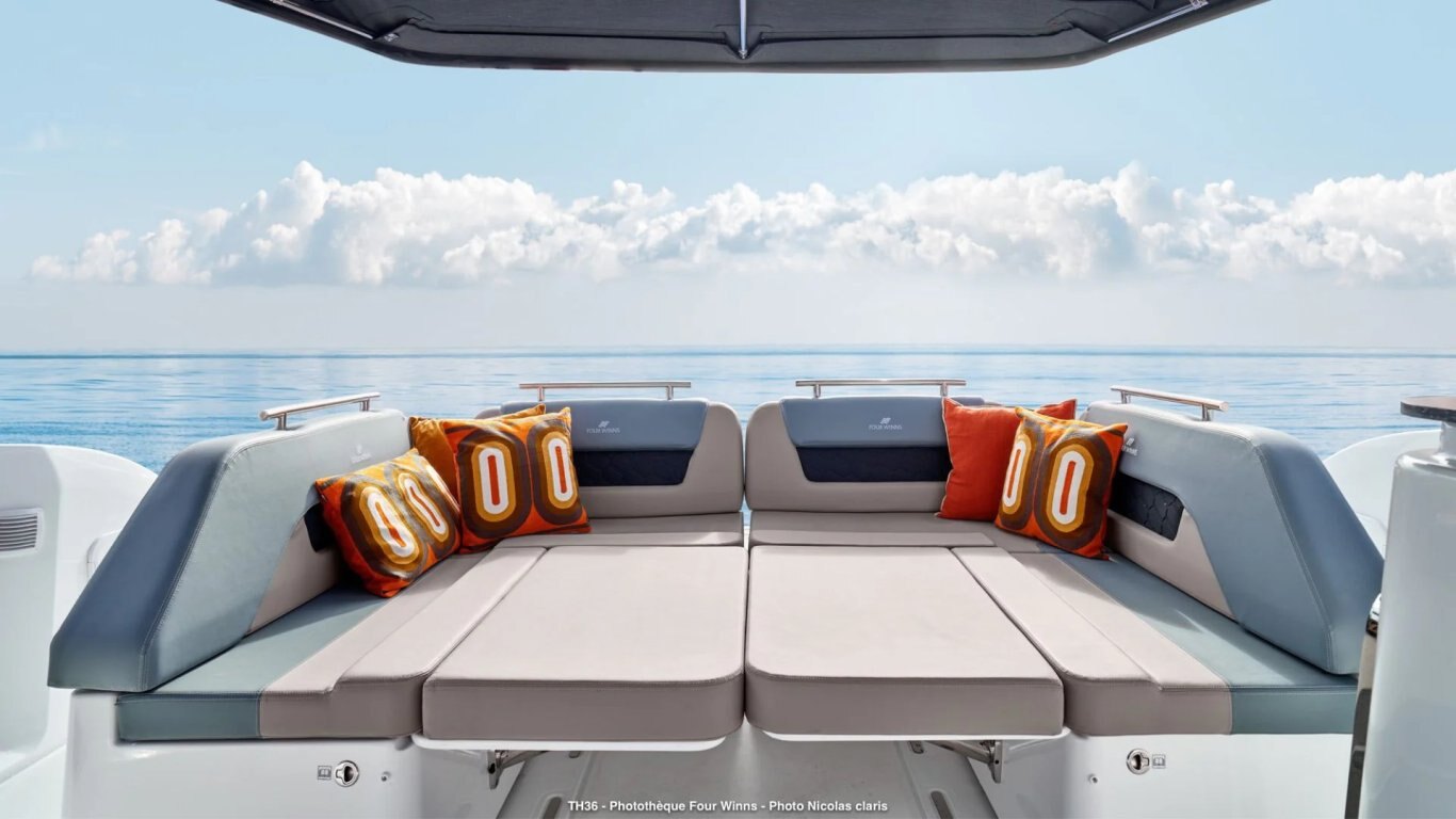 Renowned for their passion for aesthetics and style, the famous Italian Garroni Design studio drew inspiration from Four Winns’ bowriders series. They incorporated the spacious layout and sleek lines into the TH36, making it instantly recognizable on the water.